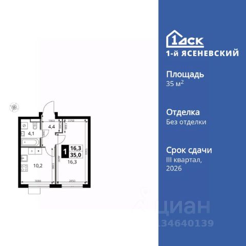 Прямая продажа от застройщика! Жилой Комплекс класса Комфорт Плюс. Продаётся 1-к квартира номер 682 общей площадью 35 кв.м. на 10-м этаже 16 этажного здания. Без отделки. Цена с учётом скидки. Особенности квартиры: - Квартиры рядом с метро - м. Корниловская 9 мин пешком - 63 га лесопарка за окнами - Школа c ИТ-кластером и бассейном. 2 детских сада - Организуем показ в удобное для вас время! - Просторная спальня, в которой можно разместить большую кровать. - Линейная планировка - максимальная функциональность и удобство. - Просторная ванная - место для расслабления и уединения. - Гибкая планировка - создайте пространство по своему вкусу. - Можно оборудовать рабочее место - комфорт для работы и учёбы. - Ниша под шкаф - компактное и удобное место для вещей. Квартира без отделки. Чистый холст для воплощения интерьера вашей мечты. Информация о комплексе: ЖК "1-й Ясеневский": преимущества городской инфраструктуры и природы. Пешая доступность к метро, школе с бассейном и ИТ-кластеру, а также 63 га Троицкого лесопарка под окнами. Закрытая территория с бульварами, велодорожками, кафе и дворами без машин. Фруктовые деревья и городские сады создают уникальную атмосферу. Всего в 1 км от МКАД - идеальный баланс для современной жизни. Транспортная доступность: До метро "Корниловская" - 12 минут пешком До метро "Тютчевская" - 25 минут пешком До метро "Теплый стан" - 10 минут на транспорте До метро "Ольховая" - 30 минут на общественном транспорте Личный автотранспорт: Выезд на Калужское шоссе - 500 м МКАД - 1 км Внутренняя инфраструктура: ЖК "1-й Ясеневский" - идеальное место для семей с детьми. Рядом Троицкий лесопарк для прогулок, а во дворах - современные детские площадки, разработанные с участием психологов. В шаговой доступности два детских сада и школа на 1100 мест с ИТ-кластером, бассейном и классами робототехники. Всё для счастливого детства и успешного будущего. Квартира без отделки - чистый холст для вашего интерьера.