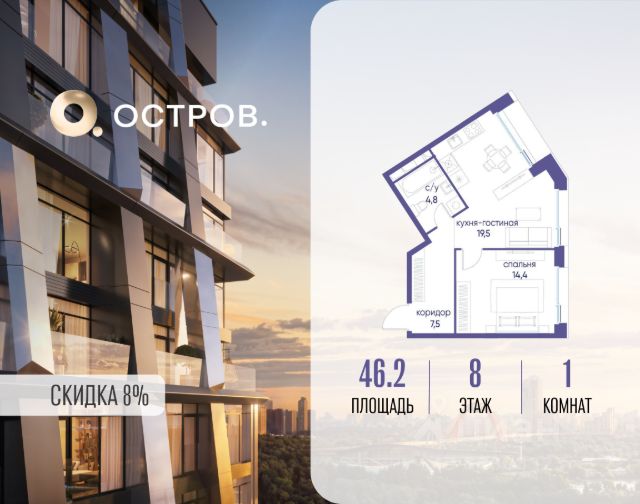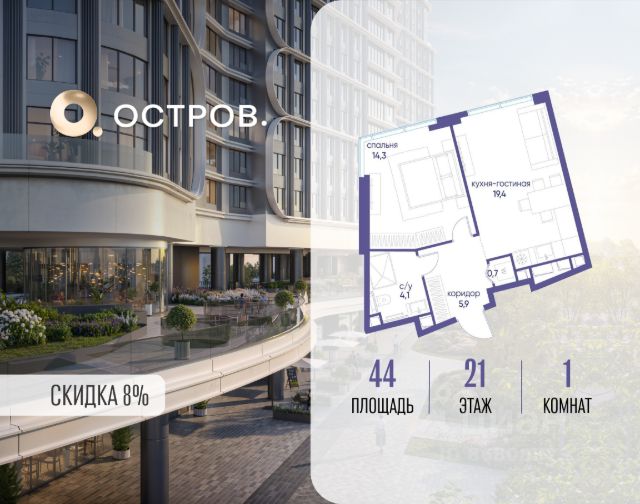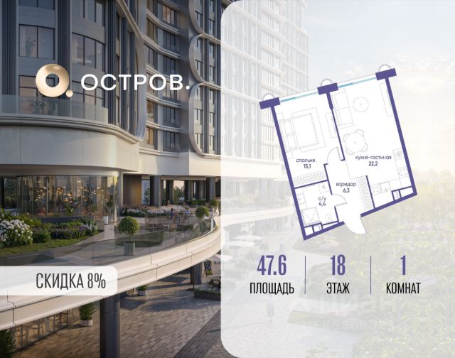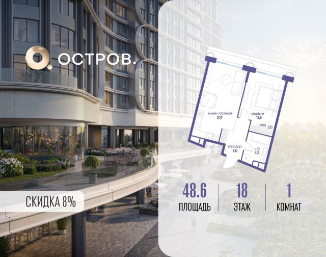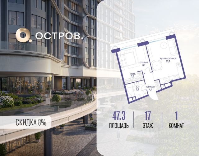 Скидка до 8% действует до 31.03.2026 г. при 100% оплате и не субсидированной ипотеке. Продаётся 1-комн. квартира от застройщика: общая площадь 47.50 м², жилая 14.10 м², кухня 22.10 м², 2-й этаж, жилой квартал "Остров 14", корпус 6 (секция 1). Срок сдачи: 2 квартал 2029 года. 1 совмещенный санузел. Остров.14 ДОХОДНЫЙ ДОМ - ЧАСТЬ ПРОЕКТА "ОСТРОВ", В 10 МИНУТАХ ОТ МОСКВА-СИТИ, В 15 МИНУТАХ ЕЗДЫ ОТ САДОВОГО КОЛЬЦА. Квартиры с отделкой и мебелью, и с управлением "под ключ" Постоянный доход для инвесторов, отельный сервис для арендаторов Востребованные для аренды планировки: студии, 1- и 2-комнатные квартиры 28-64 м2 Полная комплектация квартир: отделка, мебель, бытовая техника, кондиционеры Постоянный поток арендаторов - 10 минут от Москва-Сити, 5 минут от метро "Мневники", самодостаточная инфраструктура в квартале и собственная клубная инфраструктура в доме, спортивный, рекреационный и деловой кластеры на территории ОСТРОВА