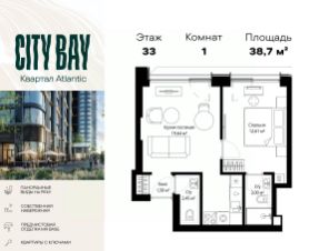 Квартира с дизайнерским ремонтом, расположенная на 34 этаже 44-этажного дома в корпусе 1.