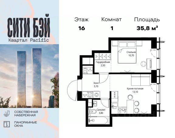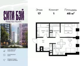 Продаётся 1-комнатная квартира 41 м². В жилом районе Алиа на 21-м этаже 30-этажного дома. Жилой район Алиа — это дома бизнес-класса у слияния Москвы-реки и Сходни. Алиа находится в Покровском-Стрешневе, экологически чистом районе на престижном северо-западе столицы. Район возводится на бывшей территории Тушинского аэрополя, где никогда не было промышленного производства. Алиа — это район разностороннего развития, спроектированный по принципу WORK.LIVE.PLAY.LEARN. Это "15-минутный город", где вся необходимая для комфортной жизни инфраструктура — на расстоянии приятной прогулки. У района удобное расположение: отсюда меньше 10 минут пешком до станций метро "Спартак" и "Тушинская" и всего полчаса на автомобиле до центра города или аэропорта Шереметьево. Архитектурную концепцию Алиа разработало бюро SOM (Skidmore, Owings & Merrill), авторы знаменитой "Бурдж-Халифа". В Алиа больше 140 планировочных решений, среди которых — редкие для Москвы форматы: квартиры с окном в ванной, пентхаус, сити-юниты и таунхаусы. Почти половина территории района отдана под благоустройство. В Алиа три парка: Линейный парк с кафе и магазинами, Центральный парк с амфитеатром, сухим фонтаном и большим плейхабом для детей всех возрастов и Прибрежный парк на собственной набережной, одной из самых длинных в Москве. В каждом урбан-блоке — закрытый внутренний двор с гипоаллергенными растениями и детской площадкой. В лобби каждого жилого корпуса в Алиа оборудована зона ожидания, колясочная, гостевой санузел и лапомойка для домашних животных. За стойкой ресепшена резидентов и их гостей встречает консьерж. Центральное лобби урбан-блока — это стильное общественное пространство с коворкингом, лаундж-зоной и кофе-пойнтом. Это "вторая гостиная" жителей урбан-блока и одно из мест, где формируется комьюнити Алиа. Два ключевых объекта инфраструктуры в Алиа — это спорткомплекс "Чкалов Арена", где представлены 25 видов спорта, и самый большой в стране бизнес-парк класса A, благодаря которому району обеспечено быстрое развитие.