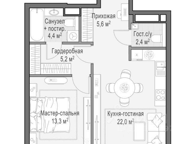 Старт продаж в новом клубном доме Климашкина 7/11 Продаётся 1-комнатная квартира общей площадью 50.20 м². Климашкина 7/11 — клубный семейный дом с ультрасовременной архитектурой, в которую оправлена антикварная редкость — полностью сохраненный фасад особняка XIX века. В проекте всего 46 резиденций — ни одной лишней, ни одной случайной. На этаже — от двух до четырех квартир, что создает исключительную приватность, редкую даже для элитного сегмента. Окружение Расположенный в тихом интеллигентном квартале Пресненского района, клубный дом Климашкина 7/11 соседствует со знаковыми зданиями старой Москвы Пресненского района. Всего в нескольких шагах находится памятник конструктивизма Центр Зотов, мастерская Зураба Церетели и Римско-католический кафедральный собор, а также в пешей доступности — Музей русского импрессионизма, парк Красная Пресня и Патриаршие пруды, Театр Сатиры и Московский Зоопарк. Транспортная доступность — 5 минут до Садового кольца; — 5 минут до ТТК; — 10 минут до Делового центра; — 12 минут до Белорусского вокзала; Внутренняя инфраструктура — Просторное дизайнерское лобби с потолками до 5 м; — Собственный приватный ландшафтный сад от L BURO; — 2-х уровневый подземный паркинг на 55 машино-мест; — Собственный SPA и фитнес-центр; — Умные системы безопасности и сервис самого высокого уровня.