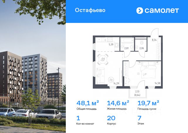 В жилом комплексе, расположенном по соседству с ландшафтным парком "Южное Бутово", продается 1-комнатная квартира площадью 44.80 кв. м. без отделки. Квартира расположена на 2 этаже 1 корпуса в жилом квартале комфорт-класса "Новые Смыслы" (ГК Unikey/Юникей). Доступная и удобная локация: - 10 минут ходьбы до станции метро "Потапово". - 25 минут ходьбы до станции метро "Бунинская аллея". - 15 минут на авто до Калужского шоссе. - 20 минут на авто до МКАД. - 30 минут на машине до аэропортов "Внуково" и "Остафьево". Продуманный архитектурный проект: - Разноуровневые секции с эстетичные башнями и контрастными цветовыми сочетаниями, напоминающими башни в Сити. - Сказочные виды из окон на современный район столицы. - Авторские планировки с потолками в 3 метра, просторными кухнями-гостиными и мастер-спальнями. - Комфортные бесплатные общественные пространства. - Подземный паркинг с прямым доступом на лифте. - Настоящий лес с живописными пейзажами и прудом прямо во дворе. Расположение Комплекс "Новые Смыслы" расположится в благоприятном районе Новой Москвы - Коммунарка. Зеленое окружение, богатая инфраструктура развивающегося района - все это сформирует особое пространство для комфортной жизни, наполненной смыслом. 10 минут на велосипеде - и вы в ландшафтном парке "Южное Бутово" или сквере у Потаповских прудов. Чуть дальше расположен Бутовский лесопарк. В окружении "Новых Смыслов" вы найдете все необходимые социальные объекты. В двух шагах от дома находится 5 школ, более десятка детских садов, секции для занятий малышей и подростков, частные клиники, супермаркеты, рестораны, студии красоты и фитнес-центры. За 12 минут на авто вы доберетесь до ледовой арены, комплекса "Спорт Станция" и спа-центра "Termoland". Внутренняя инфраструктура Для жителей "Новых Смыслов" будут созданы бесплатные общественные пространства: - Деловая гостиная с эстетичным коворкингом и переговорными. - Гостиная для души и тела, включающая фитнес-зону с тренажерами и пространства для стретчинга, йоги и медитаций. - Гостиная детства, где дети будут играть и развиваться под присмотром тьютора. - Кино-гостиная - кинотеатр на крыше одного из домов, предлагающий разнообразную программу. - Прачечная, работающая только для жильцов. Вместе с корпусами комплекса на территории запланировано строительство детского сада. На первых этажах корпусов откроются кофейни, пекарни, сервисы быта и пункты доставки. Благоустройство Чтобы отдохнуть от суеты города, достаточно выйти во двор: здесь раскинулся настоящий лес с живописными пейзажами. В тени деревьев жителей ждут пруд с мостиком и беседкой на берегу, тихие прогулочные аллеи, спортивная площадка и зоны для занятий йогой и бадминтоном на свежем воздухе. Юных жителей порадуют современные детские площадки, жукарий и специальное пространство для подвижных игр. Безопасность на территории гарантирована: двор огорожен от машин и оснащен камерами видеонаблюдения. Купить 1-комнатную квартиру в новостройке рядом с метро Улица Горчакова.