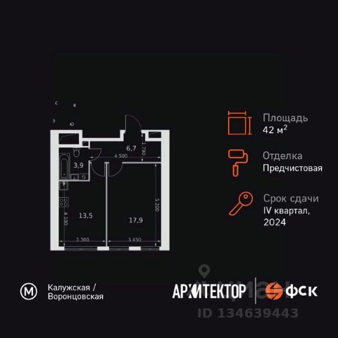 • ✅ Объект наибольшей площади: 45,1 м² рядом с метро Университет Дружбы Народов