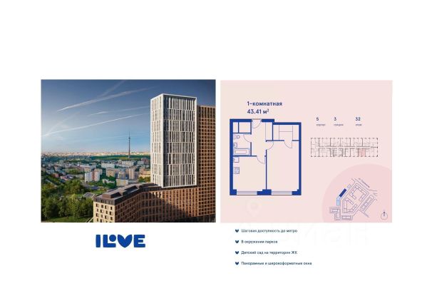 Прямая продажа от застройщика. Продаётся 1-комнатная квартира общей площадью 39.33 м² без отделки в доме премиум-класса МИRА на 3-м этаже 17 этажного дома. Квартира расположена в корпусе 1. Дом премиум-класса МИRA это: • Спокойный район с богатой историей и сложившейся инфраструктурой • Авторская архитектура на стыке классики и современности • Вход в парк прямо из жилого комплекса • Панорамные виды на Яузу, парки, ВДНХ и скульптуру "Рабочий и колхозница" • Удобные сервисы и безопасность для каждого резидента Расположение: Жилой квартал расположен в Алексеевском районе на северо-востоке Москвы, на второй линии домов, таким образом вы сможете дистанцироваться от шума и суеты проспекта Мира, но при этом будете жить недалеко от этой важной городской магистрали. Прямо у дома: • Парк Акведук • Река Яуза • Памятник "Рабочий и колхозница" Пешком: • 16 мин м. ВДНХ На автомобиле: • 12 мин ТТК • 15 мин Садовое кольцо • 12 мин Национальный парк "Лосиный остров" Благоустройство: Концепция благоустройства от бюро "ДРУЖБА" разработана в стиле "Лесная тропа". В уютном дворе расположились словно затерянные в лесу, площадки для отдыха. Они разделяются островками с травами, кустарниками, крупными камнями и деревьями, между которыми проходят узкие песчаные тропинки с деликатной подсветкой по вечерам. Центральной точкой притяжения для жителей станет главная площадь с фонтаном, которая открывается сразу из двух входных групп. Внутренний двор МИRA: • Детская площадка с зонами для игр малышей до трех лет и детей более старшего возраста • Спортивная площадка с профессиональным оборудованием для тренировок • Декоративные перголы • Воздушный арт-объект с подсветкой, похожий на облако • Чайный домик, где в отдельном отапливаемом павильоне можно в любое время года попить кофе с соседями или устроить камерное семейное чаепитие • Зоны для работы и отдыха с гамаком под навесом, скамейками и креслами Инфраструктура и окружение: В Алексеевском районе есть огромные благоустроенные парки, магазины, гимназии с высоким рейтингом и филиалы ВУЗов, частные и государственные детские сады, модные кофейни и фитнес-центры. В квартале МИRА предусмотрены: • 2 ресторана с видом на парк Акведук • 3 кафе • фитнес-студия • подземный паркинг на 330 машино-мест Компания MR предлагает своим клиентам специальные условия приобретения квартир в рамках программ ипотечного кредитования от банков-партнеров. 1-комнатная квартира в новостройке рядом с метро ВДНХ.