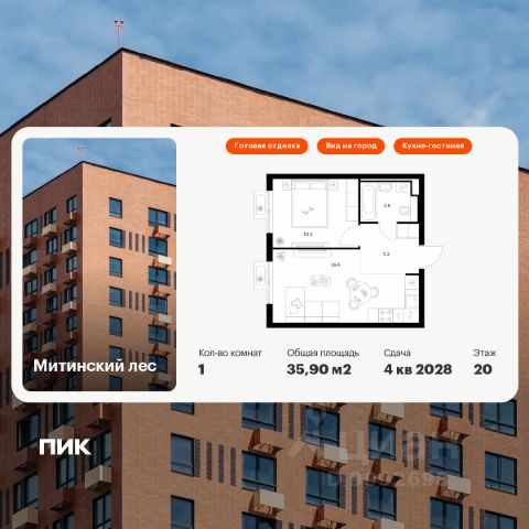 Продаётся 1-комн. квартира площадью 37,8 кв.м на 14 этаже 25 этажного дома (Корпус 15, Секция 3) проекта ПИК Митинский лес. Светлый просторный подъезд на уровне земли, функциональная планировка, большие окна, без отделки. Жилой квартал "Митинский лес" строится в Митино — районе, известном хорошей экологией. По соседству с домами протянулся большой парк. За 20 минут отсюда можно дойти до метро "Пятницкое шоссе", а за 30 — доехать на автомобиле до центра Москвы. В проекте жилые дома, 2 детских сада на 150 и 235 мест, школа на 1100 мест и подземные паркинги на 525 машиномест. В зелёных дворах-парках будут места для отдыха, современные детские и спортивные площадки. На первых этажах откроются магазины, кафе и другие сервисы — за кофе и свежим хлебом к завтраку можно будет просто спуститься на лифте. Рядом с жилым кварталом — хорошо развитый район. За 5 минут можно доехать до школ, детских садов, торговых центров, кафе и спортзалов. А в трёх минутах ходьбы находится Митинский парк, где приятно гулять и заниматься спортом. Артикул 700179 (Застройщик АО СЗ "ПФК") Купить 1-комнатную квартиру в новостройке в районе Митино в Москве.