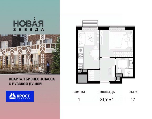 Продаётся 1-к квартира 31.9 кв.м. на 17-м этаже 22 этажного дома, корпус 2 - Резиденция "Сочи" . Без отделки. Легендарный квартал "Новая звезда" продолжается II очередью, которая спроектирована как мультифункциональный кластер. ЖК "Новая Звезда" расположен на территории Новой Москвы, в 10 мин. от м. Теплый стан и в 9 мин. пешком от строящейся станции метро "Бачуринская". Дизайн квартала спроектирован так, чтобы создать 2 города — Гостиный двор и комплекс жилых резиденций. Гостиный двор это стилобат, в котором разместятся рестораны, магазины, спортивные секции, детские кружки. Это место для активной городской жизни прямо в вашем квартале. Гостиный двор, безусловно, является уникальным форматом организации общественной жизни, предлагая жителям квартала весь необходимый спектр услуг в шаговой доступности от дома.. Жителям II очереди квартала "Новая звезда" будут доступны все инфраструктурные преимущества единого квартала: - образовательный кластер с уже построенной инновационной школой нового поколения; - спортивная инфраструктура; - торговые площади с услугами на первых этажах жилых домов.Прямая продажа от застройщика ООО СЗ "ГСД". Купить 1-комнатную квартиру в новостройке в поселении Сосенское в Москве.