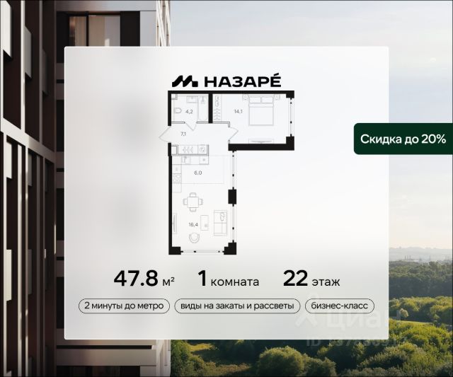 Просторная 1-комнатная квартира для молодой семьи. Общая площадь - 39.7м2, удобная планировка, кухня-гостиная 17.6м2. Панорамные виды из окон на две стороны - на национальный парк "Лосиный остров" и благоустроенный внутренний двор. Условия покупки: - Скидка при полной оплате - 10% - Ипотека от 3,5% на весь срок или 0,11% на первый год - Рассрочка без процентов - Trade-in с проживанием на время строительства дома НАЗАРЕ - шесть домов бизнес-класса высотой 24-43 этажа. Проект расположен рядом с национальным парком "Лосиный остров" и парком "Сокольники". В продаже квартиры с мастер-спальнями, кухнями-гостиными, открытыми террасами, просторными кладовыми и ванными с окном. Форматы - от светлых студий 21,6 м2 до семейных 4-комнатных 125,5 м2. Часть лотов - с предчистовой отделкой White Box. Транспортная доступность: - Метро "Бульвар Рокоссовского" и МЦК - 2 мин. пешком - Северо-Восточная хорда - 3 мин. на автомобиле - Третье транспортное кольцо - 15 мин. на автомобиле - Садовое кольцо - 18 мин. на автомобиле Инфраструктура: В составе проекта появится собственный детский сад и торгово-развлекательный центр с акцентом на шопинг и досуг. На первых этажах домов откроются кафе, пекарни, магазины и службы сервиса. В районе Богородское находятся престижные школы, медцентры, магазины и спортивные клубы. Купить 1-комнатную квартиру в новостройке станция Бульвар Рокоссовского (МЦК).