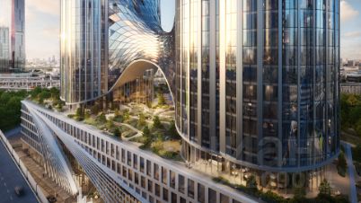 Несмотря на грандиозную высоту, башни грациозно взмывают вверх от стилобата, завершаясь изгибами террас, подобно бутонам лотоса, устремлённым к небу. Эта живая, динамичная форма наполняет окружающее пространство лёгкостью и энергией, так нужными вам в центре столицы.