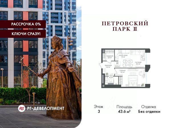 Рассрочка 0%. Первый платёж 30%, второй - не позднее 31.12.2026 г. Продаётся 1-комнатная квартира 45.7 кв.м. в ЖК "Петровский парк II" на 7-м этаже 25 этажного дома. ЖК "Петровский парк II" — жилой комплекс в Савёловском районе, где город ощущается иначе. Здесь история и масштаб Москвы не давят, а задают фон для спокойной, уверенной жизни рядом с центром. Это место, где статус читается не в громких формулировках, а в окружении, архитектуре и ощущении пространства. Коротко о важном: • Район с глубоким историческим контекстом и парковым окружением; • 5 минут пешком до метро "Динамо", рядом с деловой и культурной жизнью города; • Редкое сочетание: энергия мегаполиса и тишина зелёных аллей; • Архитектура от бюро Синтаксис с пластикой форм и индивидуальным характером фасадов; • Панорамные виды на город и зелёные массивы Петровского и Тимирязевского парков; • Закрытый двор без машин, вдохновлённый эстетикой дворцовых садов; • Просторные входные группы с высокими потолками и выверенной, респектабельной эстетикой; • Частный детский сад во дворе; • Подземная парковка и кладовые; • РГ-Девелопмент - ТОП-20 крупнейших застройщиков Москвы. Расположение комплекса формирует особое ощущение свободы выбора. Утром - прогулка по тенистым аллеям Петровского парка, днём - работа и встречи в деловых кластерах поблизости, вечером - культурные события, рестораны и городские пространства в нескольких минутах пути. Здесь расстояния измеряются не километрами, а шагами от дома. Архитектура "Петровского парка II" задумана как современный архитектурный акцент района и одновременно как уважительный диалог с исторической средой. Асимметричные объёмы, волнообразные элементы и игра света и тени создают выразительный, но сдержанный силуэт. Архитектура наполнена воздухом и визуальным ритмом, оставаясь спокойной и уверенной. Общественные пространства продолжают эту логику. Два парадных вестибюля с высокими потолками и благородной цветовой палитрой воспринимаются как пространства, где хочется замедлиться: встретить гостей, перевести дыхание после дня или просто почувствовать уровень среды, в которой вы живёте. Внутренний двор комплекса - это отдельный мир, закрытый от машин и городского шума. Продуманное благоустройство территорий отсылает к регулярным дворцовым садам: геометрия аллей, зелёные "кабинеты", цветники и камерные зоны отдыха создают разные сценарии для повседневной жизни. Здесь органично соседствуют детские игровые пространства, спортивные зоны и тихие места для отдыха. На территории комплекса расположены магазины, кафе и рестораны, а также частный детский сад, встроенный в общую структуру двора. Подземная парковка и кладовые поддерживают ощущение порядка и цельности пространства. Продается 1-комнатная квартира в новостройке на проезде Старый Петровско-Разумовский в Москве.