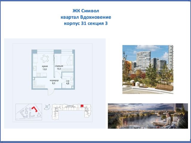 Квартира ЖК Символ квартал Вдохновение Корпус 31 Ключи в феврале 2026 года Продается 2-комнатная квартира: общая площадь 37.1 м², кухня 13.7 м², 13-й этаж, жилой квартал "Вдохновение", корпус 31 (секция 3). Срок сдачи: 1 квартал 2026 года. Квартал бизнес-класса СИМВОЛ - это городское пространство нового поколения в историческом районе Лефортово, на границе ЦАО, в 2 км от Садового кольца. Квартал Вдохновение расположен в тихой части квартала СИМВОЛ в отдалении от крупных шоссе. Бионическая архитектура от лучших московских и европейских архитекторов создает уникальный облик квартала. Стильные башни и корпуса переменной этажности с необычными фасадами футуристичными снаружи и по-домашнему уютными со стороны дворов формируют уютное пространство для жизни, общения, добрососедства и крепкой дружбы. Жителям Вдохновения не нужно никуда ехать, чтобы отлично провести время. Им даже не нужно уходить далеко от дома! Променад вдоль квартала подарит настроение, как от прогулки по центру Москвы. Любимый кофе, вкусная выпечка, модный маникюр, отличный шоппинг и многое другое буквально в двух шагах от вашего дома. Родители малышей обязательно оценят современный детский сад, удобно расположенный прямо в одном из корпусов Вдохновения. Особенности квартала: • Свой парк "Зеленая Река" - 10 га зелени и развлечений на любой вкус! • Уникальная для Москвы архитектура - Проект создан архитектурной мастерской ATRIUM по дизайн-коду британских бюро LDA Design и UHA London. • Богатая инфраструктура с детскими садами и лицеем им. Баумана, кафе и ресторанами, супермаркетами и аптеками, зоной для фитнеса, бассейном и мед. центром. • Квартиры с панорамными окнами, террасами, ванными с окнами и каминами редких форматов. • Закрытые безопасные зелёные дворы-парки без машин!