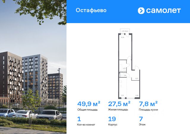 Строим кварталы для жизни с заботой о будущем. Предлагается 1-комнатная квартира комфорт-класса 37,12 кв.м в корпусе 18 на 7 этаже, в ЖК "Остафьево" Квартира с чистовой отделкой. Доступность дополнительных опций уточняйте у застройщика. Приобрести квартиру возможно по специальным акциям от застройщика, с текущими условиями акций можно ознакомиться в блоке "Акций". Цена динамическая и может отличаться, уточняйте актуальность у застройщика. "Остафьево" — масштабный жилой комплекс в Новой Москве, рядом с одноименным музеем-усадьбой и городским парком "Барыши". До станций МЦД "Щербинка" и "Остафьево" можно добраться на автомобиле за 57 минут. Часть домов уже сдана, на территории открыты две школы и три детских сада, а в будущем будет построена поликлиника, ТЦ, еще одна школа и три детских сада. Все необходимое рядом: на первых этажах домов работают магазины, аптеки и кафе. Дворы — приватные мини-парки без машин и посторонних. Кроме игровых площадок, для детей обустроили тематический плейхаб "Маяк". В будущем появятся плейхаб "Алиса в стране чудес", арт-объект "Тропа зеркал", а также большой ландшафтный парк. В квартале — монолитные дома комфортной высоты, от 10 этажей. Светлые фасады украшают кирпичные вставки в теплых природных оттенках.