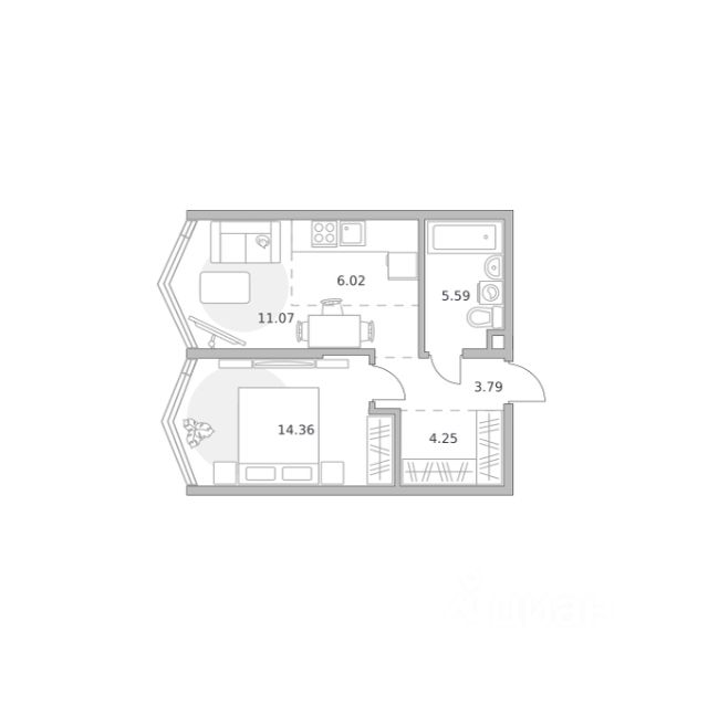 Продаётся 1-комнатная квартира 902, площадью 42,31 м², на 5 этаже в ЖК "Мнёвники от Гранель" корпус 1. Стоимость — от 24860116 руб. Квартира без отделки, планировка односторонняя, окна во двор.