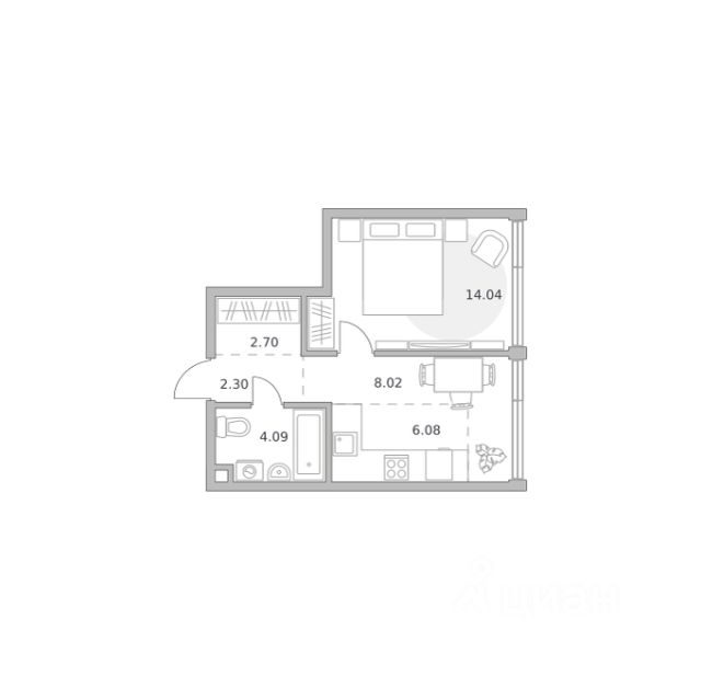 Продаётся 1-комнатная квартира 409, площадью 34,96 м², на 8 этаже в ЖК "Мнёвники от Гранель" корпус 1. Стоимость — от 21746418 руб. Квартира без отделки, планировка односторонняя, окна на улицу.