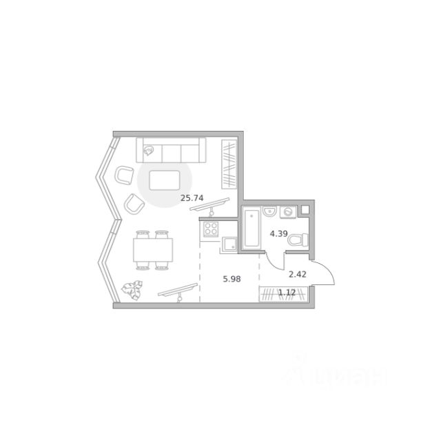 Продаётся 1-комнатная квартира 1198, площадью 42,55 м², на 22 этаже в ЖК "Мнёвники от Гранель" корпус 1. Стоимость — от 22882787 руб. Квартира без отделки, планировка односторонняя, окна во двор.