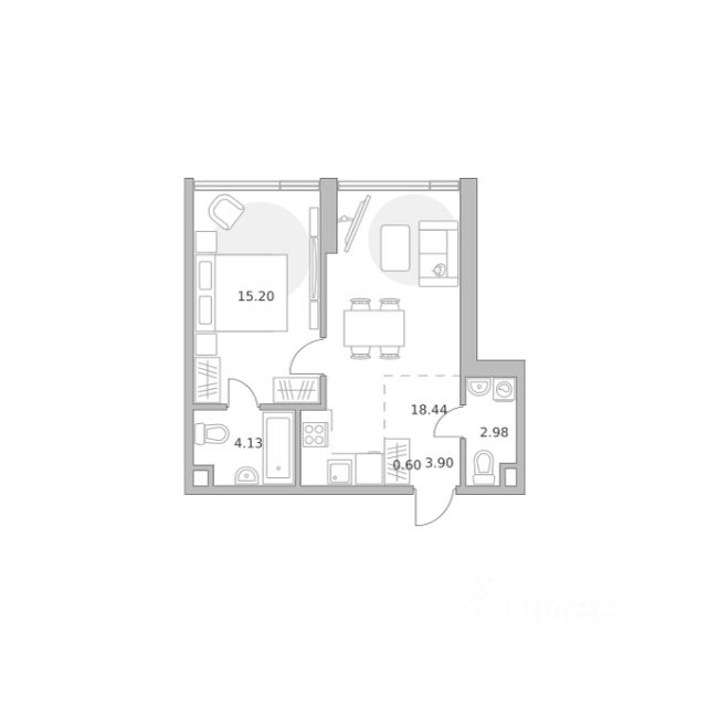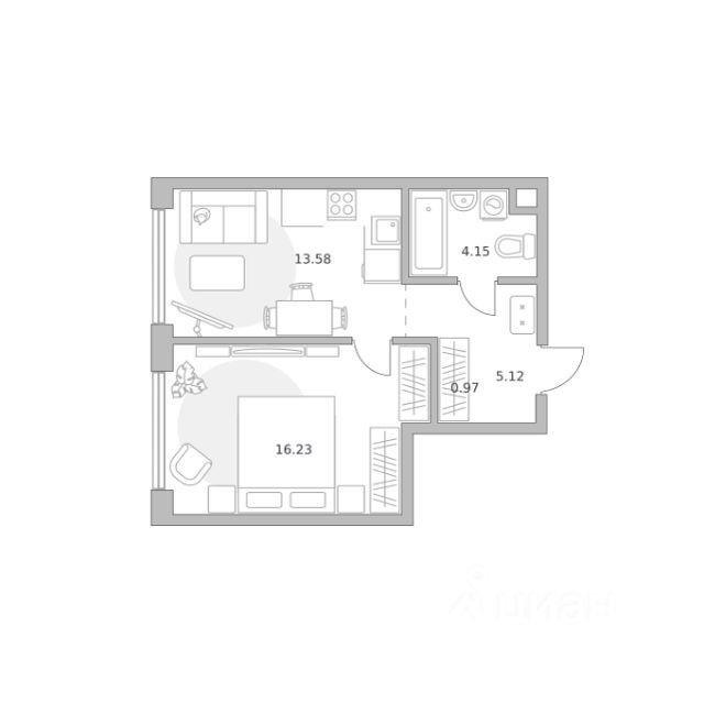 Продаётся 1-комнатная квартира 1406, площадью 41,29 м², на 15 этаже в ЖК "Мнёвники от Гранель" корпус 1. Стоимость — от 23357226 руб. Квартира без отделки, планировка односторонняя, окна во двор.