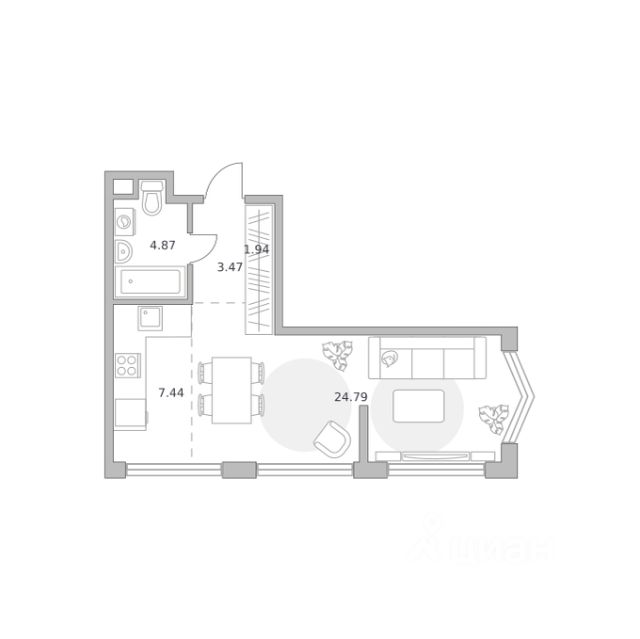 Продаётся 1-комнатная квартира 448, площадью 33,08 м², на 4 этаже в ЖК "Мнёвники от Гранель" корпус 1. Стоимость — от 19201569 руб. Квартира без отделки, планировка односторонняя, окна на улицу.