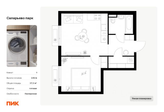 Продаётся 1-комн. квартира площадью 37,2 кв.м на 2 этаже 14 этажного дома (Корпус 69.6, Секция 6) проекта ПИК Саларьево парк. Светлый просторный подъезд на уровне земли, функциональная планировка, большие окна, c отделкой. Жилой район "Саларьево парк" расположен в Новой Москве, в четырёх километрах от МКАД по Киевскому шоссе. Две станции метро: "Саларьево" и "Филатов луг", — находятся в пешей доступности от проекта. Дойти до них можно за 510 минут. В квартале уже создана качественная среда, где есть абсолютно всё для полноценной жизни, работы и отдыха. Благодаря удобному расположению проекта всё важное будет рядом: детские сады, школы, кафе и рестораны, шопинг в торговых центрах, фитнес и даже аэропорт. Все корпуса в квартале гармонично сочетаются, образуя единую городскую среду. Между собой их объединяет невысокая этажность и натуральная цветовая гамма. Здесь приятно гулять и проводить время на улице всей семьёй. В "Саларьево парке" создана уникальная образовательная среда, включающая в себя шесть школ, рассчитанных на 6 250 учеников. Две из них уже открыты, их посещает 2 300 детей. Также на территории "Саларьево парка" находится 12 детских садов, один из которых с бассейном. Сейчас уже открыты 7 садов. В "Саларьево парке" открыта уникальная игровая площадка — PlayHub "Оригами". Здесь есть ручей, горка-труба и рельефные холмы. Взрослые смогут отдохнуть в уютном кафе, пока дети играют. Также на территории проекта есть SportHub — большая спортивная зона, разделённая по интересам и возрастам. Здесь можно заниматься разными видами спорта: футболом, баскетболом, волейболом и стритболом. Зимой центральную часть площадки превращают в каток. Во дворах-парках жилого квартала есть места для отдыха, детские и спортивные площадки. На первых этажах домов расположены магазины, кафе и полезные сервисы. Также вблизи проекта есть несколько масштабных торговых центров. До ТЦ "Саларис" пять минут пешком, до "Рио", Metro Cash & Carry и "Леруа Мерлен" — пять минут на автомобиле. Артикул 1024017 (Застройщик ООО "Специализированный Застройщик "Тирон")
