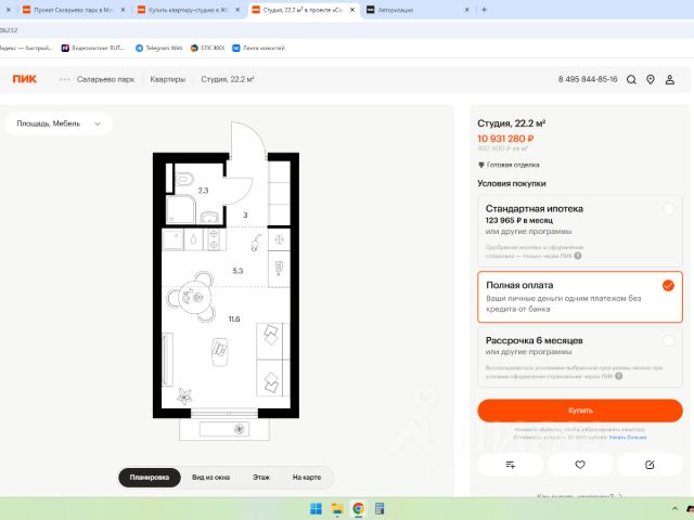 Продаётся 1-комн. квартира площадью 37,2 кв.м на 9 этаже 14 этажного дома (Корпус 69.6, Секция 6) проекта ПИК Саларьево парк. Светлый просторный подъезд на уровне земли, функциональная планировка, большие окна, c отделкой. Жилой район "Саларьево парк" расположен в Новой Москве, в четырёх километрах от МКАД по Киевскому шоссе. Две станции метро: "Саларьево" и "Филатов луг", — находятся в пешей доступности от проекта. Дойти до них можно за 510 минут. В квартале уже создана качественная среда, где есть абсолютно всё для полноценной жизни, работы и отдыха. Благодаря удобному расположению проекта всё важное будет рядом: детские сады, школы, кафе и рестораны, шопинг в торговых центрах, фитнес и даже аэропорт. Все корпуса в квартале гармонично сочетаются, образуя единую городскую среду. Между собой их объединяет невысокая этажность и натуральная цветовая гамма. Здесь приятно гулять и проводить время на улице всей семьёй. В "Саларьево парке" создана уникальная образовательная среда, включающая в себя шесть школ, рассчитанных на 6 250 учеников. Две из них уже открыты, их посещает 2 300 детей. Также на территории "Саларьево парка" находится 12 детских садов, один из которых с бассейном. Сейчас уже открыты 7 садов. В "Саларьево парке" открыта уникальная игровая площадка — PlayHub "Оригами". Здесь есть ручей, горка-труба и рельефные холмы. Взрослые смогут отдохнуть в уютном кафе, пока дети играют. Также на территории проекта есть SportHub — большая спортивная зона, разделённая по интересам и возрастам. Здесь можно заниматься разными видами спорта: футболом, баскетболом, волейболом и стритболом. Зимой центральную часть площадки превращают в каток. Во дворах-парках жилого квартала есть места для отдыха, детские и спортивные площадки. На первых этажах домов расположены магазины, кафе и полезные сервисы. Также вблизи проекта есть несколько масштабных торговых центров. До ТЦ "Саларис" пять минут пешком, до "Рио", Metro Cash & Carry и "Леруа Мерлен" — пять минут на автомобиле. Артикул 1024058 (Застройщик ООО "Специализированный Застройщик "Тирон")