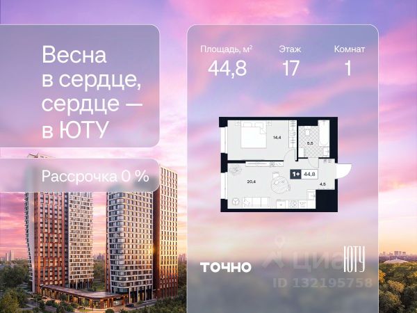Скидка до 18% в апреле на выделенный пул лотов! ЮТУ — камерный проект бизнес-класса с исключительной архитектурой, видовыми квартирами и подходом к большой благоустроенной набережной канала имени Москвы. Проект создает идеальный баланс жизни в городе. Это приватный оазис, где в любой момент можно сменить обстановку и выбрать любой из тысячи маршрутов к активному отдыху и ярким впечатлениям. Удачное месторасположение: • Первая линия в прибрежной части Химкинского водохранилища • Исключительно тихий и зелёный район Южное Тушино • За 2 минуты можно спуститься к воде, за 10 минут найти зеленые парки и готовую инфраструктуру, за 30 минут доехать до Кремля Концепция проекта: • Две футуристичные башни, соединенные торговой галереей от бюро ATRIUM • 60 неповторяющихся планировок: квартиры с угловым панорамным остеклением, мастер-спальнями и гостиными до 39м², а также просторные квартиры площадью до 128,6 м² Чувство эксклюзивности: • Своя приватная жилая экосистема только для резидентов домов • Лаунж-терраса на крыше • В проекте предусмотрен закрытый двор-парк. Прогрессивные технологии: • 3-х уровневая система безопасности (Face ID, BLE-метки, видеонаблюдение) • Умный паркинг с распознаванием номеров Проект федерального девелопера ТОЧНО, который входит в ТОП-5 девелоперов России по объемам строительства. Продам 1-комнатную квартиру в новостройке в районе Южное Тушино в Москве.