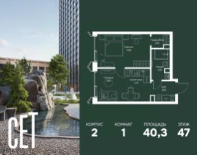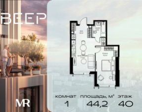 Прямая продажа от застройщика. В ЖК Сет продается 1-комнатная квартира площадью 30.77 м², расположенная в корпусе Б, на 12 этаже 59 этажного дома. Сет имеет стратегически выгодное расположение в ЗАО, в районе с большой историей и блестящим будущим: между природной зоной долины реки Сетунь и Кутузовским проспектом. В рамках возведения первой очереди предусмотрено три корпуса высотой 18, 45 и 59 этажей. На верхних этажах спроектированы общедоступные смотровые площадки с панорамным обзором на центр столицы. Преимущества проекта: • Функциональные планировочные решения • Контроль проникновения через входную дверь • Система управления освещением и температурой в квартире • Система защиты от протечек с функцией перекрытия воды • Вход в подъезд по биометрическим считывателям Face ID • Скоростные лифты • Двухуровневый подземный охраняемый паркинг на 495 машино-мест Застройка Сет включает в себя не только жилые корпуса, но и инфраструктурные объекты. Все необходимое для повседневного комфорта будет расположено в шаговой доступности: • Фитнес-Клуб с бассейном • Ведущая городская школа, детский сад и школа искусств • Центр культуры и досуга • Медицинский центр • Кафе и рестораны Расположение комплекса: Пешком: • Метро "Давыдково" - 17 минут • Парк "Долина реки Сетунь" - 3 минуты • Открытие новых станций метро в шаговой доступности в будущем Инфраструктура: Разнообразить свой день резиденты Веер смогут также проводя больше времени на свежем воздухе. Двор разделен на 4 зоны разных эмоций и действий, которые пересечены и соединены веерными прогулочными маршрутами: • Спортивная площадка устроена в глубине "Кленовой рощи" • В "Чайном домике" будет создан навес с утеплением для отдыха в любую погоду • Площадки для детей воплотятся в "Волшебный лес" с цветами, зеркалами и световым дизайном • "Центральная площадь" устроена у водного оазиса живописного пруда. На машине: • "Москва-Сити" - 15 минут • Садовое кольцо - 20 минут • ТЦ "Океания" - 8 минут • ТЦ "Времена года" - 13 минут • Сколково - 12 минут • Гребной канал - 17 минут Компания MR предлагает своим клиентам специальные условия приобретения квартир в рамках программ ипотечного кредитования от банков-партнеров. Продается 1-комнатная квартира в новостройке в округе ЗАО в Москве.