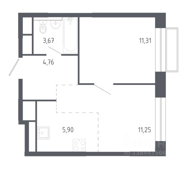Продаётся 1-комнатная квартира 103, площадью 37,54 м², на 13 этаже в ЖК "Пехра" корпус 8. Стоимость — от 6941254 руб. Квартира без отделки, планировка односторонняя, окна во двор.