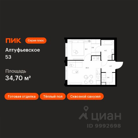 Продаётся 1-комн. квартира площадью 40,9 кв.м на 24 этаже 32 этажного дома (Корпус 1.1, Секция 2) проекта ПИК Алтуфьевское 53. Светлый просторный подъезд на уровне земли, функциональная планировка, большие окна, c отделкой. Проект "Серии плюс" возводится на северо-востоке Москвы. Рядом — удобный выезд на Алтуфьевское шоссе, а оттуда — на ТТК и МКАД, так что до центра Москвы вы доедете на машине примерно за 20 минут. До станции метро "Отрадное" можно доехать на транспорте за 15 минут. За 20 минут получится доехать до станции "Бибирево". Столько же займёт прогулка до станции МЦД "Дегунино". Архитектурную концепцию проекта разработало российское бюро M.A.M. Искусная работа с формой зданий позволила проекту воплотить в себе современную элегантность и функциональность. В проекте представлено множество планировок семейного формата: с мастер-спальнями и комнатами, разнесёнными по разным сторонам квартиры, чтобы у каждого было своё личное пространство. Большие семьи также оценят удобные планировки с постирочными и гардеробными. А также уникальные форматы квартир с террасами, балконами и лоджиями. В проект входят монолитные дома, два детских сада и подземный паркинг. На территории будет городская школа. Во дворах мы построим уютные парки с детскими площадками и местами для отдыха. Здесь вы сможете даже смотреть кино и работать — для этого во дворах-парках будет Вайфай. Чуть дальше от домов мы разместим спортивные площадки, чтобы шум от них не мешал жителям. В тихих и быстрых лифтах будут усилители связи, чтобы она не прерывалась и жители продолжали говорить по телефону или проверять соцсети даже перемещаясь между этажами. В окружающем районе есть всё для комфортной жизни: детские сады, школы, торговые центры, парки для прогулок, фитнес-клубы и даже бассейн. Артикул 1004075 (Застройщик ООО СЗ "Перспективные решения") 1-комнатная квартира с отделкой от застройщика в районе Алтуфьевский в Москве.