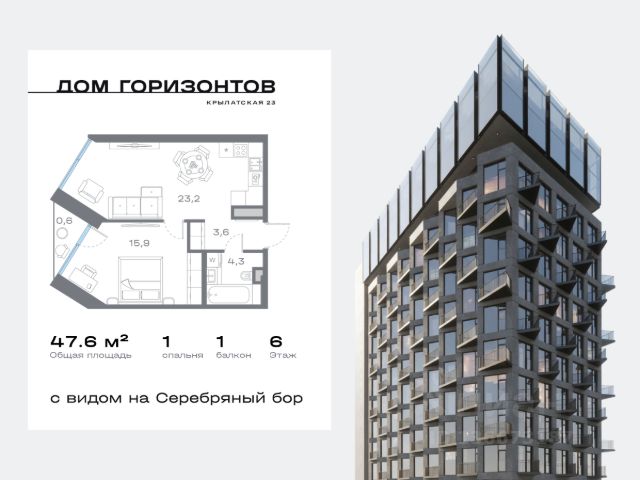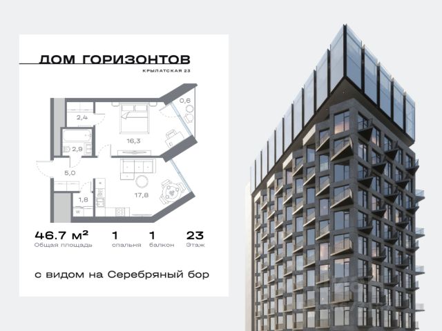 Клубный дом в Крылатском районе уникальный проект для данной локации • Скидки месяца на избранный пул лотов • Рассрочка на выгодных условиях ЛОКАЦИЯ: • Самый экологичный район столицы — более 70% территории Крылатского занимают природные зоны и акватория. • Крылатские Холмы в пешей доступности • 10 минут на автомобиле от Москва-Сити • Удобные выезды на основные магистрали: ТТК, Садовое кольцо ИНФРАСТРУКТУРА РАЙОНА: • Богатая спортивная инфраструктура: велотрек, гребной канал, ледовый дворец, горнолыжная база, теннисные корты и т.д. • Престижные школы и детские сады ДОМ ГОРИЗОНТОВ • 135 квартир и 7 пентхаусов • - 2 этажа паркинга с зарядками для электрокаров • Приватная закрытая территория с богатой инфраструктурой для резидентов Квартира видовая с балконом и панорамным остеклением: - Уютная функциональная планировка - Кол-во комнат: 1 - Общая площадь - 46.32 кв.м. - Кухня 6.49 кв.м - 4 этаж 27 этажного дома Вечные виды на зеленые просторы Серебряного Бора и сверкающую ленту Москвы-реки с аркой Живописного моста. ИНФРАСТРУКТУРА УДОБНОЙ ЖИЗНИ: • Круглосуточное видеонаблюдение и контроль доступа • Консьерж-сервис 24/7 • Зарядные станции для электромобилей на подземном паркинге • Индивидуальные келлеры для хранения спортивного инвентаря • Детский физкультурный комплекс с двумя бассейнами Дом Горизонтов — клубное пространство в одном из самых зелёных районов Москвы, где каждая деталь дарит вдохновение и ощущение свободы. Оперативный показ квартиры! Бронирование по телефону Продам 1-комнатную квартиру с отделкой от застройщика в районе Крылатское в Москве.