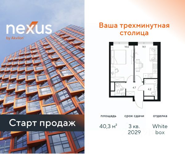 О квартире Продаётся 1-комнатная квартира общей площадью 40.68 кв.м. с отделкой white box. Квартира расположена на 3 этаже корпуса 5 в жилом комплексе бизнес-класса "Среда на Кутузовском" в пешей доступности от метро "Кунцевская". О жилом комплексе Комплекс предназначен для людей, которые ставят в приоритет свой комфорт, умеют прислушиваться к себе и понимают, что нужно для внутренней гармонии. Это проект для тех, кто ценит свое время и использует его правильно. Для тех, кто умеет радоваться тому, что есть. "Среда на Кутузовском" — личное место силы и гармонии в двух шагах от центра города. Инфраструктура Жилой комплекс строится в престижном и зеленом Кунцево. Здесь расположены различные торговые центры, престижные учебные заведения (МГУ, РЭУ им. Плеханова, Финансовый университет при Правительстве РФ, РУДН) медицинские клиники. Представлены широкие возможности для поклонников разных видов спорта: от бега в ближайших парках и велозаездов до гребли, баскетбола, футбола, хоккея, фигурного катания и катания на лыжах. На каждый день подойдет World Class с открытым бассейном — он находится всего в 1 минуте от дома. Выбор мест для прогулок также разнообразен: Суворовский парк, лесной массив Крылатских холмов, Москворецкий парк и природный заказник "Долина реки Сетунь". 10 мин пешком: -м. Кунцевская -вся необходимая инфраструктура До 15 мин на авто: -Северо-Западная хорда -Кутузовский проспект -Рублевское шоссе -МКАД -Можайское шоссе Особенности Проект сочетает в себе ритмичность и динамичность, благодаря своей архитектуре, при он этом окружен зеленью и парками. "Среда на Кутузовском" погружает в активный и разнообразный образ жизни, дает вариативные возможности досуга и вдохновляет на новые свершения. —Зоны отдыха у воды —Принцип многослойности в архитектуре —Зона барбекю —Пентхаусы —Умный паркинг —Гайдбук по управлению умным домом —Окна в пол на всех этажах 1-комнатная квартира с отделкой от застройщика в районе Кунцево в Москве.
