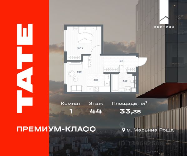 Прямая продажа от застройщика. Продается 1-комнатная квартира общей площадью 43.50 м² с предчистовой отделкой в ЖК премиум-класса Мод на 10-м этаже 55 этажного дома. Мод - жилой комплекс премиум-класса в историческом районе Москвы Марьина Роща, состоящий из трех клубных домов (9 этажей) и трёх разноэтажных башен (44-55 этажей). Закрытая территория жилого комплекса, продуманное благоустройство, эксплуатируемые кровли стилобата, образовательный центр с детским садом создают приватное пространство для тихой семейной жизни, а городская площадь с фонтанами, ресторан, супермаркет, коммерческая инфраструктура на первых этажах привносят созвучную с ритмом города динамику. Преимущества проекта: - В шаговой доступности новый деловой кластер Москвы - Выразительная авторская архитектура - Единственные в Москве фасады башен из натурального камня - Панорамное остекление и высота потолков до 4,8 м - Квартиры и апартаменты с отделкой MR Base - Многоуровневое благоустройство с зонированием на закрытой территории - Многофункциональный образовательный детский центр с детским садом - Двухуровневый подземный паркинг Транспортная доступность: - 5 минут пешком до станции метро "Марьина Роща" - 3 минуты до ТТК - 15 минут до Цветного бульвара Компания MR предлагает своим клиентам специальные условия приобретения квартир в рамках программ ипотечного кредитования от банков-партнеров. Продается 1-комнатная квартира с отделкой от застройщика в районе Марьина роща в Москве.