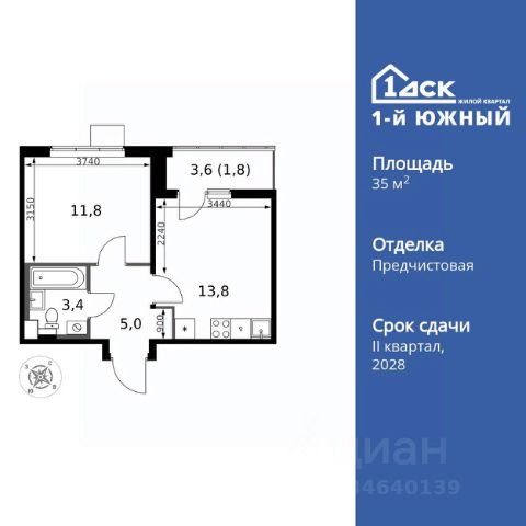 Прямая продажа от застройщика! Жилой Комплекс класса Комфорт Плюс. Продаётся 1-к квартира номер 224 общей площадью 35.4 кв.м. на 8-м этаже 24 этажного здания. Предчистовая отделка. Цена с учётом скидки. Особенности квартиры: - МЦД-5 в пешей доступности - Квартал с южным садом - Свои 3 детских сада и 2 большие школы - Организуем показ в удобное для вас время! - Линейная планировка - максимальная функциональность и удобство. - Просторная кухня - место для семейных ужинов и кулинарных экспериментов. - Линейная кухня - функциональность и практичность в одном решении. - Ниша под шкаф - компактное и удобное место для вещей. - Лоджия - уютное место для отдыха и тишины. Квартира с предчистовой отделкой. Вам не придется заниматься черновыми и трудоёмкими работы, а чистовую отделку и дизайн - сделайте на свой вкус. Информация о комплексе: ЖК от 1-го ДСК: евро формат, большие застеклённые лоджии и умный дом. Управляйте светом и техникой через Яндекс.Станцию, защита от протечек. Удачная локация: транспортная доступность и природа рядом. В каждом дворе - плодовые деревья, весной цветут яблони и груши, зимой - лыжня среди заснеженного леса. Транспортная доступность: - Общественный транспорт: Действующая ж/д станция Булатниково (в перспективе будущая МДЦ D5) в пешей доступности, всего 10-12 минут. - Личный автотранспорт: Удобный выезд на трассу М4-Дон в сторону Москвы и области 850 м, до МКАД - 1 км Внутренняя инфраструктура: "1-й Южный": продуманные подъезды с панорамным остеклением и входами с улицы и двора. Безбарьерная среда для родителей с колясками и маломобильных жителей. В каждом подъезде - колясочные, лапомойки, санузлы, место для консьержа. На территории: 3 детских сада и 2 школы под окнами, пешеходный бульвар-дендрарий для прогулок, центральная площадь для мероприятий. Всё для комфортной жизни, общения и активностей в шаговой доступности. Квартира с предчистовой отделкой - ваш дизайн без черновых работ