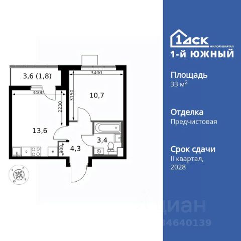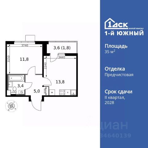 Прямая продажа от застройщика! Жилой Комплекс класса Комфорт Плюс. Продаётся 1-к квартира номер 204 общей площадью 35.4 кв.м. на 3-м этаже 24 этажного здания. Предчистовая отделка. Цена с учётом скидки. Особенности квартиры: - МЦД-5 в пешей доступности - Квартал с южным садом - Свои 3 детских сада и 2 большие школы - Организуем показ в удобное для вас время! - Линейная планировка - максимальная функциональность и удобство. - Просторная кухня - место для семейных ужинов и кулинарных экспериментов. - Линейная кухня - функциональность и практичность в одном решении. - Ниша под шкаф - компактное и удобное место для вещей. - Лоджия - уютное место для отдыха и тишины. Квартира с предчистовой отделкой. Вам не придется заниматься черновыми и трудоёмкими работы, а чистовую отделку и дизайн - сделайте на свой вкус. Информация о комплексе: ЖК от 1-го ДСК: евро формат, большие застеклённые лоджии и умный дом. Управляйте светом и техникой через Яндекс.Станцию, защита от протечек. Удачная локация: транспортная доступность и природа рядом. В каждом дворе - плодовые деревья, весной цветут яблони и груши, зимой - лыжня среди заснеженного леса. Транспортная доступность: - Общественный транспорт: Действующая ж/д станция Булатниково (в перспективе будущая МДЦ D5) в пешей доступности, всего 10-12 минут. - Личный автотранспорт: Удобный выезд на трассу М4-Дон в сторону Москвы и области 850 м, до МКАД - 1 км Внутренняя инфраструктура: "1-й Южный": продуманные подъезды с панорамным остеклением и входами с улицы и двора. Безбарьерная среда для родителей с колясками и маломобильных жителей. В каждом подъезде - колясочные, лапомойки, санузлы, место для консьержа. На территории: 3 детских сада и 2 школы под окнами, пешеходный бульвар-дендрарий для прогулок, центральная площадь для мероприятий. Всё для комфортной жизни, общения и активностей в шаговой доступности. Квартира с предчистовой отделкой - ваш дизайн без черновых работ