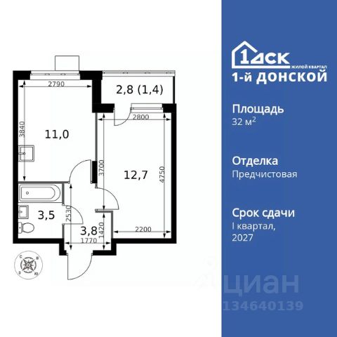 Прямая продажа от застройщика! Жилой Комплекс класса Комфорт Плюс. Продаётся 1-к квартира номер 439 общей площадью 32.4 кв.м. на 17-м этаже 24 этажного здания. Отделка Whitebox. Особенности квартиры: - МЦД-5 в пешей доступности - Квартал с собственной набережной - Свои 2 детских сада и школа - Линейная планировка - максимальная функциональность и удобство. - Ниша под шкаф - компактное и удобное место для вещей. - Лоджия - уютное место для отдыха и тишины. Квартира с предчистовой отделкой (White box). Вам не придется заниматься черновыми и трудоёмкими работы, а чистовую отделку и дизайн - сделайте на свой вкус. Информация о комплексе: Комплекс 1-й Донской расположен в 7 км от МКАД по трассе М-4 Дон. В нем сочетаются все плюсы комфортной городской среды и природного окружения. В проекте достаточно большой процент квартир, выходящих на 2-3 стороны света. Секции-маяки формируют у зданий визуальную L-форму, что придает застройке структуру и ритмику объемов. На ощущение динамики работает и разная этажность зданий. Теплая цветовая палитра фасадов отражает природу Дона. Вечерами дома преображаются благодаря архитектурной подсветке, выгодно выделяясь на городском фоне. Природа оказывает положительное влияние на человека на всех уровнях восприятия: через зрение, запахи, звуки, тактильные ощущения. Неподалеку от ЖК Первый Донской: Ермолинский парк, Видновский лесопарк, Жуковский парк Транспортная доступность: Комплекс удобно расположен в 7 км от МКАД по трассе М-4 Дон (через Видное). Расстояние до Каширского шоссе составляет 12 км. Добраться до метро и центра Москвы позволяет развитая сеть маршрутов общественного наземного транспорта. Действующая ж/д станция Калинина Павелецкого направления в 15-17 минутах ходьбы (МЦД-5 в 2025-2026 гг). Внутренняя инфраструктура: Проект 1-й Донской соседствует с бурно развивающимся районом, основная инфраструктура которого уже сложилась. В строительстве современных жилых комплексов в округе есть свои плюсы: здесь формируется продуманная и комфортная городская среда. Что касается внутренней инфраструктуры, на территории квартала будут расположены собственные муниципальные 2 детских садика и школа, которые помогут совместить приятное с полезным. Территория комплекса пронизана целой сетью живописных пешеходных маршрутов, позволяющих попасть в любой уголок района. Основные пути, как водится, "торговые". Они проходят вдоль магазинов, кафе и других представителей коммерции и отделяются от проезжей части зеленой "фито" - стеной. Среди крупных социальных объектов предусмотрены своя поликлиника и торговый центр с примыкающей площадью для общественных мероприятий. Уют начинается с продуманного подъезда. Сквозные подъезды наполнены светом благодаря сплошному остеклению. Вход в них есть и с улицы, и со двора.