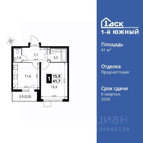 Прямая продажа от застройщика! Жилой Комплекс класса Комфорт Плюс. Продаётся 1-к квартира номер 728 общей площадью 41.7 кв.м. на 7-м этаже 24 этажного здания. Предчистовая отделка. Цена с учётом скидки. Особенности квартиры: - МЦД-5 в пешей доступности - Квартал с южным садом - Свои 3 детских сада и 2 большие школы - Организуем показ в удобное для вас время! - Линейная планировка - максимальная функциональность и удобство. - Раздельный санузел - больше удобства для всех членов семьи. - Линейная кухня - функциональность и практичность в одном решении. - Лоджия - уютное место для отдыха и тишины. Квартира с предчистовой отделкой. Вам не придется заниматься черновыми и трудоёмкими работы, а чистовую отделку и дизайн - сделайте на свой вкус. Информация о комплексе: ЖК от 1-го ДСК: евро формат, большие застеклённые лоджии и умный дом. Управляйте светом и техникой через Яндекс.Станцию, защита от протечек. Удачная локация: транспортная доступность и природа рядом. В каждом дворе - плодовые деревья, весной цветут яблони и груши, зимой - лыжня среди заснеженного леса. Транспортная доступность: - Общественный транспорт: Действующая ж/д станция Булатниково (в перспективе будущая МДЦ D5) в пешей доступности, всего 10-12 минут. - Личный автотранспорт: Удобный выезд на трассу М4-Дон в сторону Москвы и области 850 м, до МКАД - 1 км Внутренняя инфраструктура: "1-й Южный": продуманные подъезды с панорамным остеклением и входами с улицы и двора. Безбарьерная среда для родителей с колясками и маломобильных жителей. В каждом подъезде - колясочные, лапомойки, санузлы, место для консьержа. На территории: 3 детских сада и 2 школы под окнами, пешеходный бульвар-дендрарий для прогулок, центральная площадь для мероприятий. Всё для комфортной жизни, общения и активностей в шаговой доступности. Квартира с предчистовой отделкой - ваш дизайн без черновых работ