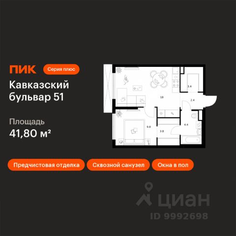 Продаётся 1-комн. квартира площадью 32,9 кв.м на 20 этаже 24 этажного дома (Корпус 3.5, Секция 2) проекта ПИК Кавказский бульвар 51. Светлый просторный подъезд на уровне земли, функциональная планировка, большие окна, предчистовая отделка. "Кавказский бульвар 51" — современный жилой квартал в районе Царицыно. Проект частично реализован. "Кавказский бульвар 51" находится в районе Царицыно, недалеко от одноимённого музея-заповедника. До метро "Кантемировская" — 17 минут пешком. За 20 можно дойти до станции "Чертаново". В 10 минутах на машине — МКАД, в 11 минутах — Варшавское шоссе, а в 16 минутах — ТТК. В проекте жилые дома высотой от 5 до 33 этажей, детский сад и школа. На первых этажах доступны магазины, кафе, салоны красоты и другие сервисы — чтобы купить кофе и свежий хлеб к завтраку, можно просто спуститься на лифте. В уютных дворах-парках есть места для отдыха и детские площадки. Для прогулок на свежем воздухе мы построим для жителей широкий пешеходный бульвар. В районе вокруг "Кавказского бульвара 51" есть всё для комфортной жизни: детские сады, школы, поликлиники, магазины и торговые центры. Девять минут на машине — и вы у музея-заповедника "Царицыно", где можно гулять среди исторических построек, лежать на траве под тенью деревьев или заниматься спортом на специальных площадках. Есть парки и поближе: до Аршиновского можно дойти за 8 минут, а до парка "Сосенки" — за 13 минут. Артикул 998721 (Застройщик АО "СПЕЦИАЛИЗИРОВАННЫЙ ЗАСТРОЙЩИК "ТОРГОВЫЙ ДОМ СПУТНИК")