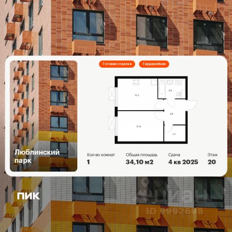 Продаётся 1-комн. квартира площадью 32,6 кв.м на 29 этаже 33 этажного дома (Корпус 14.5, Секция 3) проекта ПИК Люблинский парк. Светлый просторный подъезд на уровне земли, функциональная планировка, большие окна, c отделкой. Жилой квартал "Люблинский парк" расположен на юго-востоке Москвы, в шаговой доступности от станции "Братиславская". На метро до центра ехать всего 30 минут. Также недалеко станция МЦД "Перерва", от которой можно уехать в Москву или в область. В проекте 54 жилых корпуса, три школы, семь детских садов, поликлиника. В районе есть все условия для комфортной жизни: торговые центры, школы, детские сады, поликлиники и спортивные центры. Рядом находятся усадьба Люблино, скверы и парки. Различные магазины, кафе и другие сервисы откроются на первых этажах, а на подземных будут паркинги с удобной навигацией. В зелёных дворах без автомобилей мы построим детские площадки и места для отдыха. А ещё "Люблинский парк" стал третьим проектом ПИК с большой игровой площадкой PlayHub, которая уже открылась между 1-м и 2-м блоками на безопасном расстоянии от дороги. Новое детское пространство "Остров" воплощает идею бесконечной игры. Ландшафт площадки — это ещё и игровой элемент, который помогает детям придумывать множество самых разнообразных игр. Здесь интересно детям разного возраста — от малышей до подростков. Жителям квартала Люблинский парк и их друзьям доступен проект ПИКСПОРТ — это бесплатные занятия с профессиональными тренерами. Тренировки по разным направлениям, например йога, фитнес, бег, воркаут, проходят как в группе на улице рядом с домом, так и онлайн. Артикул 896953 (Застройщик ООО СЗ "Люблино Девелопмент") Продам 1-комнатную квартиру с отделкой от застройщика рядом с метро Марьино.