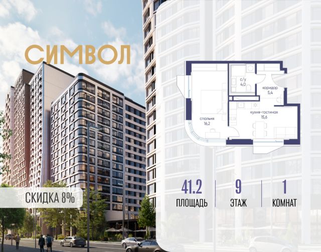 Скидка до 8% действует до 31.03.2026 г. при 100% оплате и не субсидированной ипотеке. Продается 1-комнатная квартира от застройщика: общая площадь 42.00 м², жилая 16.10 м², кухня 16.90 м², 15-й этаж, жилой квартал "Гордость", корпус 36 (секция 5). Срок сдачи: 2 квартал 2029 года. Позвоните сейчас и забронируйте квартиру! Квартал бизнес-класса СИМВОЛ - это городское пространство нового поколения в историческом районе Лефортово, на границе ЦАО, в 2 км от Садового кольца. Бионическая архитектура СИМВОЛА превратила Лефортово в суперсовременное и модное пространство. Из окон, с балконов и террас просторных квартир СИМВОЛА открываются отличные виды на город и новый парк "Зеленая река", "протекающий" через все кварталы комплекса на 2 км. В квартале уже есть все, что нужно для комфортной жизни: кафе и рестораны, супермаркеты и магазины, медицинские и физкультурно-оздоровительные центры, салоны красоты и барбершопы, аптеки и оптики, химчистки, пункты доставки и другие сервисы - всего более 90 действующих объектов внутриквартальной инфраструктуры. Для юных жителей СИМВОЛА открыты детский сад и инженерный лицей при МГТУ им. Баумана. Особенности квартала: • Свой парк "Зеленая Река" - 10 га зелени и развлечений на любой вкус! • Уникальная для Москвы архитектура - Проект создан архитектурной мастерской ATRIUM по дизайн-коду британских бюро LDA Design и UHA London. • Богатая инфраструктура с детскими садами и лицеем им. Баумана, кафе и ресторанами, супермаркетами и аптеками, зоной для фитнеса, бассейном и мед. центром. • Квартиры с панорамными окнами, террасами, ванными с окнами и каминами редких форматов. • Закрытые безопасные зелёные дворы-парки без машин!
