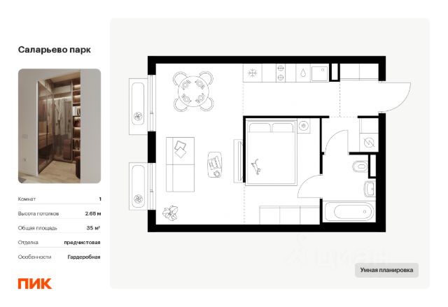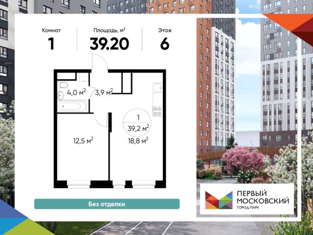 Продается однокомнатная квартира без отделки в 9 фазе города-парка "Первый Московский". Общая площадь квартиры - 37,6 кв. м, этаж 5 из 19. Срок сдачи - 4 квартал 2026 года. Тип дома - монолитный. Цена указана при 100% оплате. Новый корпус состоит из 2х секций, без отделки. Город-парк "Первый Московский" расположен всего в 7 км по Киевскому шоссе (Новая Москва). Из города-парка прямой выезд на Киевское шоссе и трассу Солнцево-Бутово-Варшавское шоссе. ТРАНСПОРТНАЯ ДОСТУПНОСТЬ: - 5 мин. на личном автомобиле или 10 мин. на автобусе 189, 147, 193 до станции метро "Филатов Луг" - 5 мин. на личном автомобиле или 12 мин. на автобусе 863 до станции метро "Саларьево" - 6 мин. на личном автомобиле или 15 мин. на автобусе 333 до станции метро "Рассказовка" РАЗВИТАЯ ИНФРАСТРУКТУРА В ОКРУЖЕНИИ: - общеобразовательная школа 2120 корпуса д1, д7, ш1-ш5 - детский сад 2120 корпуса д2, д9 - школа искусств - городская больница, детская поликлиника, филиал 5 - подстанция скорой помощи 58 и пожарно-спасательный центр 313 - отдел полиции, отдел ГИБДД - торговые центры Столица и Новомосковский - стадион, каток, бассейн - кафе, продуктовые магазины, аптеки, фитнес центры, салоны красоты и пр. БЛАГОУСТРОЙСТВО: - детская площадка для малышей и детей до 12 лет - места отдыха для родителей в непосредственной близости - озеленение территории с учетом зонирования - максимальная близость корпуса к пару Филатов луг ОСОБЕННОСТИ АРХИТЕКТУРЫ: - безбарьерные входные группы - колясочные в каждой входной группе - коммерческие помещения на 1 этаже в двух секциях - кладовые помещения расположены на жилых этажах и на -1 этаже - в каждой секции корпуса по 3 лифта: 2 пассажирских, 1 грузовой - на фасадах предусмотрены корзины для установки внешних блоков кондиционеров - видеонаблюдение установленное в холлах первых этажей, у подъездов и прилегающей территории АВТОРСКИЙ ДИЗАЙН: Входные группы выполнены по авторскому дизайну, оснащены системой "тёплый пол". В каждой входной группе будет располагаться комфортабельная зона ожидания, почтовые ящики с ячейкой для спама, колясочная, акцентные пуфы и столик.