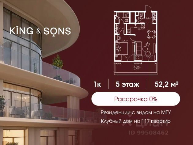 Предусмотрено четыре спальни, кабинет с балконом, две гостиные, столовая, постирочная зона, спа-зона с сауной, балкон. Эксклюзивная люксовая мебель и предметы декора изготовлены на заказ в Италии. Из окна открываются виды на город, парк, башни "Москва-Сити" и благоустроенную территорию комплекса. Предусмотрено два машиноместа в подземном паркинге.