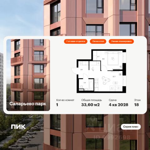 Продаётся 1-комн. квартира площадью 30,6 кв.м на 15 этаже 24 этажного дома (Корпус 82.4, Секция 4) проекта ПИК Саларьево парк. Светлый просторный подъезд на уровне земли, функциональная планировка, большие окна, предчистовая отделка. Жилой район "Саларьево парк" расположен в Новой Москве, в четырёх километрах от МКАД по Киевскому шоссе. Две станции метро: "Саларьево" и "Филатов луг", — находятся в пешей доступности от проекта. Дойти до них можно за 510 минут. В квартале уже создана качественная среда, где есть абсолютно всё для полноценной жизни, работы и отдыха. Благодаря удобному расположению проекта всё важное будет рядом: детские сады, школы, кафе и рестораны, шопинг в торговых центрах, фитнес и даже аэропорт. Все корпуса в квартале гармонично сочетаются, образуя единую городскую среду. Между собой их объединяет невысокая этажность и натуральная цветовая гамма. Здесь приятно гулять и проводить время на улице всей семьёй. В "Саларьево парке" создана уникальная образовательная среда, включающая в себя шесть школ, рассчитанных на 6 250 учеников. Две из них уже открыты, их посещает 2 300 детей. Также на территории "Саларьево парка" находится 12 детских садов, один из которых с бассейном. Сейчас уже открыты 7 садов. В "Саларьево парке" открыта уникальная игровая площадка — PlayHub "Оригами". Здесь есть ручей, горка-труба и рельефные холмы. Взрослые смогут отдохнуть в уютном кафе, пока дети играют. Также на территории проекта есть SportHub — большая спортивная зона, разделённая по интересам и возрастам. Здесь можно заниматься разными видами спорта: футболом, баскетболом, волейболом и стритболом. Зимой центральную часть площадки превращают в каток. Во дворах-парках жилого квартала есть места для отдыха, детские и спортивные площадки. На первых этажах домов расположены магазины, кафе и полезные сервисы. Также вблизи проекта есть несколько масштабных торговых центров. До ТЦ "Саларис" пять минут пешком, до "Рио", Metro Cash & Carry и "Леруа Мерлен" — пять минут на автомобиле. Артикул 1032702 (Застройщик ООО "Специализированный Застройщик "Тирон") Продам 1-комнатную квартиру с отделкой от застройщика рядом с метро Румянцево.