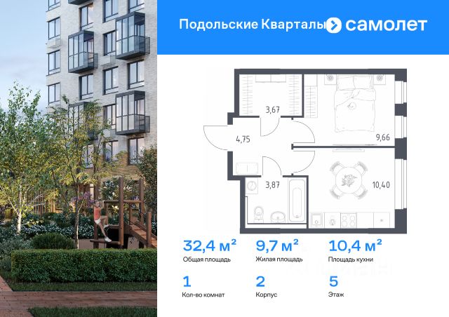 Продается квартира площадью 41.28 кв. м с отделкой white box на 22 этаже 22 этажного дома. Квартира находится в новом жилом комплексе "Онегин", расположенном по адресу: Московская область, г. Подольск, ул. Садовая 3, корп. 1. "Онегин" - начало новой жизни. Проект от девелопера "Развитие" расположился в центральной части Подольска - города-спутника столицы. Жилой комплекс состоит из 10 секций переменной высоты (20 - 22 этажа) и включает в себя 510 квартир, собственную инфраструктуру, закрытый благоустроенный двор-парк, подземный паркинг на 262 машино-места. Прекрасный баланс города и природы - ЖК "Онегин". Расположение Пешком: - 5 мин. до остановки "Красная горка"; - 10 мин. до склона у реки Пахры; - 30 мин. до МЦД "Силикатная" (или 15 мин. на автобусе). На автомобиле: - 3 мин. до проспекта Ленина с выездом на Симферопольское шоссе; - 10 мин. до центра Подольска; - 30 мин. до ст. метро "Бульвар Дмитрия Донского"; - 35 мин. до МКАД; - 1 час до центра Москвы. Благоустройство - большой приватный двор только для пешеходов; - собственный сквер с всесезонной растительностью; - яркий игровой комплекс для детей всех возрастов; - спортивный корт с тренажерами; - площадка для баскетбола и футбола; - стильная входная группа с витражным остеклением; - 2 пассажирских лифта и 1 грузовой в каждом подъезде; - беседки и скамьи для отдыха; - экологически-чистое игровое и спортивное оборудование; - освещение в темное время суток; - гостевая автостоянка на отдельной территории; - все сервисы бытовых услуг в шаговой доступности. Окружение - досуговые пространства в любое время года: парк культуры и отдыха имени В. Талалихина, музей-заповедник "Подолье", горнолыжный комплекс "Красная Горка", исторические усадьбы "Остафьево" и "Дубровицы"; - школа и детский сад в 5 минутах ходьбы; - торгово-развлекательные центры "Капитолий", "Галерея", "Кварц"; - 3 фитнес-центра, стадионы "Зенит" и "Подолье", 4 взрослых и детских бассейна.