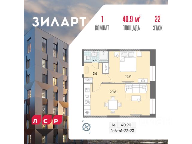 Продаётся 1-комнатная квартира в доме 18 (ЗИЛАРТ ГРАНД) ЖК "ЗИЛАРТ" общей площадью 41.5 кв. метров на 19 этаже. ЗИЛАРТ ГРАНД новый дом в сердце квартала "ЗИЛАРТ". Он воплощает самые смелые мечты, сочетая уникальную архитектуру, передовые инженерные решения и беспрецедентную инфраструктуру. Дом представляет собой семь домов, объединенных единым стилобатом. Башни имеют три вида фасадов: у каждого своя харизма и свой стиль. Архитектурный проект разработан бюро "Цимайло Ляшенко и Партнеры" победителем многочисленных международных премий и конкурсов. ЗИЛАРТ ГРАНД расположен в центре событий: вы можете отправиться на прогулку по бульвару, набережной или в парк "Тюфелева роща", заняться спортом в премиальном фитнес-центре, пойти на шопинг в торговую галерею или посетить музейно-выставочный центр. В пешей доступности есть вся необходимая инфраструктура: супермаркеты, салоны красоты, уютные кафе и рестораны, спортивные студии, места для отдыха и развлечений. Многое из этого вы сможете найти на бульваре в ТЦ "ЗУМ". Проект "ЗИЛАРТ" разработан ведущими архитекторами страны и мира, при этом все они соблюдают единый дизайн-код. ЖК "ЗИЛАРТ" представляет собой 30 домов с эксклюзивной архитектурой, 17 из которых уже сданы и заселены. Квартал обеспечен социальной и общественной инфраструктурой, появились новые улицы и объекты благоустройства. Молодые родители будут спокойны за настоящее и будущее детей благодаря современной образовательной среде. В "ЗИЛАРТе" расположена одна из самых больших школ России на 2,5 тысячи учеников. Помимо основного образования, дети могут дополнительно посещать "Кванториум" и множество кружков, заниматься спортом и хореографией. Весной 2020 года "ЗИЛАРТ" стал победителем Всероссийского конкурса в области жилищного строительства в номинации "Лучший жилой комплекс-новостройка в Российской Федерации".