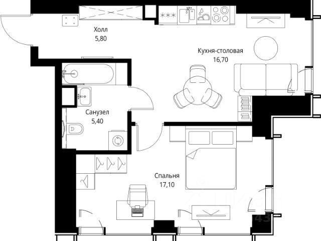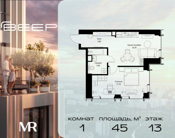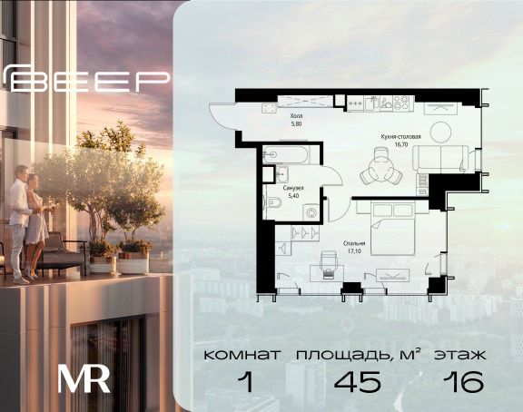 Старт продаж новой очереди! Продаётся 1-комнатная квартира общей площадью 38.16 м² без отделки в ЖК Веер на 2-м этаже 70 этажного дома. Веер.2 — вторая очередь футуристичного квартала бизнес-класса Веер. Это новая экосистема в престижном Западном округе Москвы, поражающая масштабностью внутренней инфраструктуры. ЖК находится всего в 5 минутах от Кутузовского проспекта и в 15 минутах от Сколково. Ансамбль из четырех стеклянных башен с доминантой в 237 метров разработан по принципу современного урбанизма и выражен в лаконичных объемах — параллелепипедах со сглаженными углами, которые придают зданиям утонченный вид. Расположение и транспортная доступность: • Образовательный комплекс в составе топовой школы, состоящий из двух зданий: основное на 1500 школьных и 450 дошкольных мест, отдельное здание детского сада на 300 мест. • Парк "Долина реки Сетунь" площадью более 700 гектаров • Рядом МГУ, МГИМО, РАНХиГС и Академия ФСБ • 15 минут по Кутузовскому проспекту до ужина в центре с видом на Москву-реку • 18 минут пешком до м. "Давыдково" • Открытие новых станций метро в шаговой доступности в будущем Инфраструктура: Двор в Веер.2 — это ассиметричные холмы, каменные "лабиринты", зеленые ковры и хвойные островки с единой живой экосистемой. Здесь есть все: • Павильон умиротворения Место отдыха под навесом в спокойной части двора, окруженное деревьями. • Активная тропа Тактильная дорога из камней разного диаметра для расслабляющих прогулок. • Бизнес-гарден Оборудованное пространство для работы на свежем воздухе со столом и встроенными розетками. • Детская площадка Двухуровневая площадка "Ботаника" с песочницей, переговорной трубой и горкой "Дружба". Компания MR предлагает своим клиентам специальные условия приобретения квартир в рамках программ ипотечного кредитования от банков-партнеров. Продам 1-комнатную квартиру с отделкой от застройщика в районе Можайский в Москве.