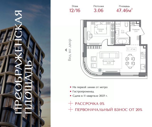 ARTEL два 12-этажных клубных дома по 82 квартиры в каждом. Квартира без отделки. Доступна опция дозаказа (2 варианта отделки на выбор). Особенности: Консьерж-сервис премиального уровня: ваших гостей встретят и проводят, помогут с бытовыми вопросами. Профессиональные службы клининга и охраны обеспечат полный порядок. На ухоженной, безопасной территории комплекса вы не увидите никого кроме соседей. Доступна опция валет-паркинга. Инфраструктура: 58 машиномест в подземном паркинге. Каждое — с зарядкой для электромобиля. Есть мотоместа. Предусмотрено хранение велосипедов и самокатов, колясочные и лапомойки. В приватном атриумном дворе сад с дорожками из натурального камня, воркаут-зона, места для отдыха и работы. Отдельная парковка для курьеров. Для курьеров будет отдельный вход, чтобы не пересекаться с остальными жильцами. Вокруг комплекса много зелени, низкая плотность и этажность окружающей застройки. Новых строек рядом не предвидится. В шаговой доступности: 10 детских садов и 8 школ, Преображенская набережная, кафе и рестораны, ТЦ, музеи, медицинская и спортивная инфраструктура. Сделка по договору долевого участия. Купить 1-комнатную квартиру с отделкой от застройщика в районе Преображенское в Москве.
