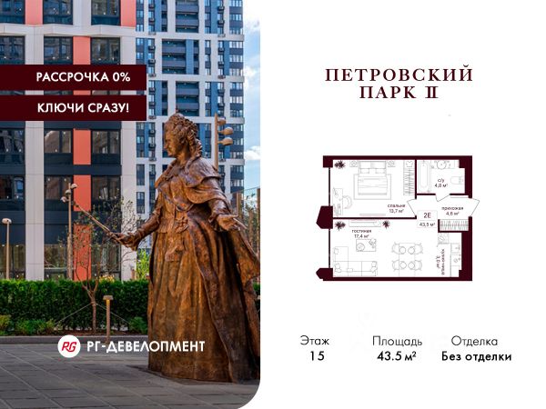 Дом сдан. Ключи в день покупки! В продаже 1-комнатная квартира площадью 40.80 м² с предчистовой отделкой на 8 этаже 49 этажного дома в корпусе Кристалл. ЖК Симфония 34 - концептуально новый жилой комплекс премиум-класса с подземной парковкой, состоит из четырех башен высотой 36 - 54 этажа. Квартиры сдаются с базовой (предчистовой) отделкой MR BASE или дизайнерской чистовой отделкой MR READY. Высота потолков 3 - 6 метров, окна высотой до 2,6 м. Более 100 кладовых в подземной части ЖК и более 500 на этажах. Безопасность - Система контроля входа на территорию комплекса, биометрия - Система автоматического водяного пожаротушения и противопожарного водопровода, система пожарной вентиляции - Доступ на парковку при помощи системы распознавания автомобильных номеров, карточка для контроля доступа резидентов - Система видеонаблюдения - Круглосуточная связь через приложение, телефон, голосовые сообщения с охраной, консьержем, call-центр. Расположение Пешком - 6 минут до метро "Дмитровская" - 15 минут до Тимирязевского парка На машине - 5 минут до Савеловского вокзала и Аэроэкспресса в Шереметьево - 10 минут до Москва-Сити и Садового кольца Благоустройство - 70% территории отведены под зеленые насаждения и ландшафтный дизайн - Приватный Японский сад - Детские площадки с зонированием по возрасту - Clubhouse для резидентов - Wellness & SPA - Зона для пикника, зона с гамаками - Центральное лобби, ресторан, коммерческие помещения - Дополнительный вход/выход на территорию комплекса Окружение - В 10 минутах от Симфония 34 находится дизайн-завод Flacon, где регулярно проходят культурно-образовательные и развлекательные мероприятия - Тимирязевский парк расположен в 850 м. Площадь парка 232 га - Рядом расположен парк "Дубки", площадью 16,5 га. - В 15 минутах расположен Хлебозавод 9. Здесь находятся шоурумы брендов, кафе разных кухонь мира, образовательные проекты и площадки для мероприятий Компания MR предлагает своим клиентам специальные условия приобретения квартир в рамках программ ипотечного кредитования от банков-партнеров. Купить 1-комнатную квартиру с отделкой от застройщика в районе Савеловский в Москве.