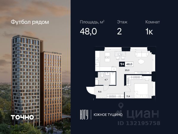 ЮТУ-камерные небоскребы бизнес-класса с исключительной архитектурой, видовыми квартирами и подходом к большой воде-благоустроенной набережной канала имени Москвы. Проект ЮТУ создает идеальный баланс жизни в городе. Это приватный оазис, где в любой момент можно сменить контекст и выбрать любой из тысячи маршрутов к активному отдыху и ярким впечатлениям. Локация премиум-класса • Первая линии в прибрежной части Химкинского водохранилища • Исключительно тихий и зелёный район Южное Тушино • За 2 минуты можно спуститься к воде, за 10 минут найти зеленые парки и готовую инфраструктуру, за 30 минут доехать до Кремля Концепция проекта • Две футуристичные башни, соединенные торговой галереей от бюро ATRIUM • 60 неповторяющихся планировок: квартиры с угловым "плавным" панорамным остеклением, мастер-спальнями и гостиными до 39м² и просто очень большие квартиры площадью до 128,6 м² • Беспрецедентная коллекция видов-в проекте 80 % видовых квартир Чувство эксклюзивности • Своя приватная жилая экосистема -только для резидентов домов • Лаунж-терраса на крыше • Пространство скрыто от посторонних глаз-с трех сторон его окружают строения проекта Прогрессивные технологии • 3-уровневая система безопасности (Face ID, BLE-метки, видеонаблюдение) • Умный паркинг с распознаванием номеров Проект федерального девелопера ТОЧНО-из ТОП-3 застройщиков России. Компания в проекте реализует ответственный подход к развитию пространств для благополучной жизни человека. И что в ЮТУ особенное воплощение приобретает концепция человекоцентричности, как заметная грань девелопмента ТОЧНО. 1-комнатная квартира с отделкой от застройщика в округе СЗАО в Москве.
