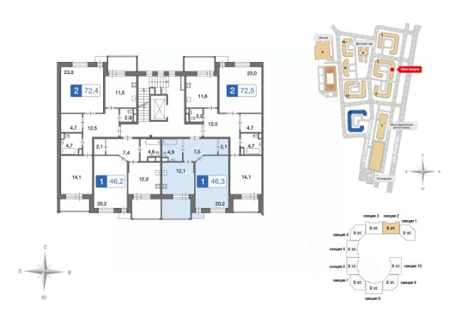 Продаётся 1-комнатная квартира в сданном доме (Семёна Гордого, 12), срок сдачи: IV-кв. 2018, общей площадью 46.3 кв.м., на 5 этаже. Расположение, транспортная доступность Жилой комплекс "Ново-Никольское" - это жилой район класса комфорт, в состав которого входят несколько десятков жилых зданий разнообразных форматов (коттеджи, дуплексы, таунхаусы, малоэтажные дома высотой до 3 этажей и многоэтажные корпуса высотой до 9 этажей). Район располагается на просторной территории площадью 115 га рядом с деревней Ивановское Первомайского поселения Троицкого административного округа Москвы, в 21 км от МКАД по Киевскому шоссе. Удобная транспортная развязка, ведущая к шоссе, находится в непосредственной близости от "Ново-Никольского". Трасса пролегает мимо аэропорта "Внуково". Ближайшая железнодорожная станция, "Апрелевка", расположена в десяти километрах от комплекса. Добраться от комплекса до ближайших станций метро можно на маршрутном такси 304 (до станций метро "Румянцево", "Тропарёво" и "Юго-Западная"), на автобусе 526 или маршрутном такси 522 (до станции метро "Тёплый Стан"). Инфраструктура Внутренняя инфраструктура ЖК "Ново-Никольское" включает в себя три детских сада на 150, 100 и 40 мест, две общеобразовательные школы на 825 и 285 мест, школу искусств, торгово-развлекательный центр, минимаркет, различные сервисные службы и другие объекты. Детский сад на 150 мест и школа на 825 мест уже построены и в ближайшее время будут введены в эксплуатацию. Для автовладельцев в комплексе предусмотрены парковочные места, как на придомовой территории, так и в крытом семиуровневом паркинге. Экологическая ситуация здесь благоприятная. Со стороны Киевского шоссе "Ново-Никольское" окружают лесные массивы. Река Десна, протекающая вдоль территории жилого комплекса, украшена живописным каскадом прудов. В километре от комплекса находится усадьба Старо-Никольское, главный дом которой был построен в 19 веке, и отреставрирован в 2015 году. Надежность застройщика Девелопером жилого комплекса "Ново-Никольский" выступает производственно-строительное управление "АГРОСТРОЙ", зарегистрированное в 2005 году. Организация работает как в России, так и в странах ближнего зарубежья. "АГРОСТРОЙ" возводит не только жилую недвижимость, но и социально-значимые объекты инфраструктуры: медицинские центры, торгово-развлекательные комплексы, административные здания. Также в портфеле организации есть спортивные сооружения крытого и открытого типов. При возведении жилых комплексов девелопер ориентируется на строительство целых кварталов с развитой инфраструктурой. Помимо строительных работ, "АГРОСТРОЙ" производит отделочные, комплектующие, строительные материалы, осуществляет земляные работы, занимается прокладкой наружных сетей, разводкой коммуникаций внутри зданий, а также сносом ветхого жилья. Поскольку объекты организация сдаёт "под ключ", она также выполняет отделочные работы и ландшафтное оформление придомовых территорий. Архитектура В комплексе есть все необходимые центра