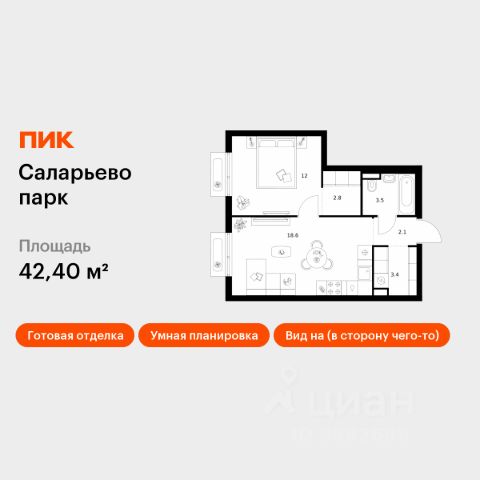 Продается однокомнатная квартира в городе-парке "Переделкино Ближнее". Общая площадь квартиры - 38,5 кв. м, этаж 5 из 17. Срок сдачи - 1 квартал 2028 года. Тип дома - монолитный. Корпус расположен в 13 фазе строительства и состоит из 8 секций с переменной этажностью 12-17 этажей. Все секции без отделки. Около 13 фазы запланировано строительство многоуровневого паркинга на 300 м/мест. 13 фаза имеет уникальное расположение и находится непосредственно на берегу Федосьинского пруда, который является сердцем города-парка "Переделкино Ближнее". Город-парк "Переделкино Ближнее" расположен в 8 км от МКАД по Боровскому шоссе. ТРАНСПОРТНАЯ ДОСТУПНОСТЬ: - 15 минут пешком до станции МЦД-4 "Мичуринец" - 25 минут пешком до станции метро "Рассказовка" Солнцевской линии - 30 минут до центра Москвы - 2026 г. - открытие трассы Солнцево-Бутово-Варшавское шоссе РАЗВИТАЯ СОЦИАЛЬНАЯ ИНФРАСТРУКТУРА: - 7 детских садов, 3 школы - банки, продуктовые магазины, аптеки, фитнес центры, салоны красоты и пр БЛАГОУСТРОЙСТВО: - дворы без машин - игровые зоны и развивающие детские площадки - зоны для созерцательного и медитативного отдыха - зоны для занятий спортом ОСОБЕННОСТИ АРХИТЕКТУРЫ: - высокие потолки от 3,03 м - безбарьерные входные группы - колясочные в каждой входной группе - кладовые помещения расположены на -1 этаже каждой секции - в каждой секции 2 лифта: 1 пассажирский, 1 грузовой - на фасаде предусмотрены корзины для установки кондиционеров АВТОРСКИЙ ДИЗАЙН: Входные группы выполнены по авторскому дизайну, благодаря панорамному остеклению наполнены естественным светом. В каждой входной группе будет располагаться комфортабельная зона ожидания с возможностью зарядить электронные устройства, почтовые ящики, колясочная, акцентные пуфы и столик. 1-комнатная квартира в Новой Москве.