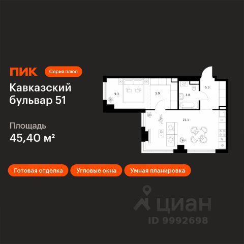 Продаётся 1-комн. квартира площадью 38,8 кв.м на 4 этаже 32 этажного дома (Корпус 3.6, Секция 3) проекта ПИК Кавказский бульвар 51. Светлый просторный подъезд на уровне земли, функциональная планировка, большие окна, c отделкой. "Кавказский бульвар 51" — современный жилой квартал в районе Царицыно. Проект частично реализован и находится в районе Царицыно, недалеко от одноимённого музея-заповедника. До метро "Кантемировская" — 17 минут пешком. За 20 можно дойти до станции "Чертаново". В 10 минутах на машине — МКАД, в 11 минутах — Варшавское шоссе, а в 16 минутах — ТТК. В проекте жилые дома высотой от 5 до 33 этажей, детский сад и школа. На первых этажах доступны магазины, кафе, салоны красоты и другие сервисы — чтобы купить кофе и свежий хлеб к завтраку, можно просто спуститься на лифте. В уютных дворах-парках есть места для отдыха и детские площадки. Для прогулок на свежем воздухе мы построим для жителей широкий пешеходный бульвар. В районе вокруг "Кавказского бульвара 51" есть всё для комфортной жизни: детские сады, школы, поликлиники, магазины и торговые центры. Девять минут на машине — и вы у музея-заповедника "Царицыно", где можно гулять среди исторических построек, лежать на траве под тенью деревьев или заниматься спортом на специальных площадках. Есть парки и поближе: до Аршиновского можно дойти за 8 минут, а до парка "Сосенки" — за 13 минут. Артикул 998813 (Застройщик АО "СПЕЦИАЛИЗИРОВАННЫЙ ЗАСТРОЙЩИК "ТОРГОВЫЙ ДОМ СПУТНИК")