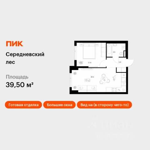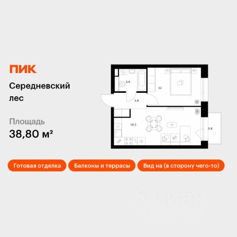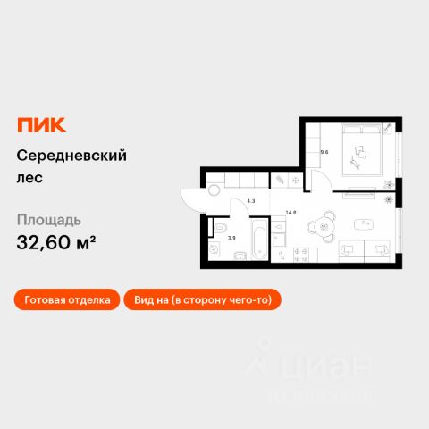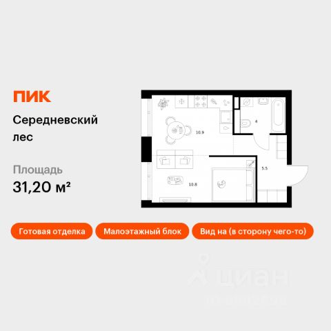 Продаётся 1-комн. квартира площадью 36,8 кв.м на 9 этаже 16 этажного дома (Корпус 2.1.2, Секция 2) проекта ПИК Середневский лес. Светлый просторный подъезд на уровне земли, функциональная планировка, большие окна, c отделкой. В 10 минутах на автомобиле находится станция метро "Внуково", а в 15 минутах — станции "Филатов Луг" и "Саларьево". От них до центра Москвы всего 3540 минут. На рейсовом автобусе от жилого квартала до метро "Филатов Луг" — 20 минут. На территории "Середневского леса" появилось общественное пространство с игровыми площадками, местами для отдыха, пешеходными маршрутами и велопарковкой — для прогулок, отдыха и встреч жителей квартала. Также внутри жилого квартала уже открыта школа на 1100 мест и детский сад для 325 малышей. В дальнейшем откроется ещё один сад для 340 детей. Артикул 1037796 (Застройщик ООО "Специализированный застройщик Середнево")