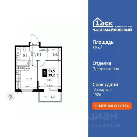 Продаётся 1-комн. квартира площадью 48,3 кв.м на 3 этаже 43 этажного дома (Корпус 1.1, Секция 1) проекта ПИК 2-й Иртышский. Светлый просторный подъезд на уровне земли, функциональная планировка, большие окна, c отделкой. "2-й Иртышский" возводится на востоке Москвы, между тремя станциями метро "Щелковская", "Черкизовская" и "Бульвар Рокоссовского". Проект включает жилые корпуса с индивидуальной архитектурой, школу и детский сад. Проект состоит из зданий разной высоты и разной по характеру архитектуры. Узнаваемой доминантой квартала станет башня из стекла и металла, напоминающая водопад. Квартал расположен в окружении нескольких знаковых рекреационных зон столицы. Вам понадобится всего несколько минут, чтобы оказаться в атмосфере спокойствия и слияния с природой. Всего 15 минут пешком, и вы в "Сиреневом саду", а дорога до национального парка "Лосиный остров" или Гольяновского пруда займёт 6 минут на авто. До Черкизовского детского парка и "Усадьбы Измайлово" можно доехать за 15 минут. До станции "Черкизовская" можно дойти пешком за 25 минут или доехать на общественном транспорте за 20. Дорога до станций "Бульвар Рокоссовского" и "Щёлковской" займёт 25 минут на общественном транспорте. Автомобилисты оценят удобные выезды на Щёлковское шоссе и СВХ. Путь до МКАД займет около 14 минут, до ТТК - 20. Артикул 980560 (Застройщик ООО "СЗ "Л-Девелопмент") Продается 1-комнатная квартира в новостройке с отделкой в районе Гольяново в Москве.